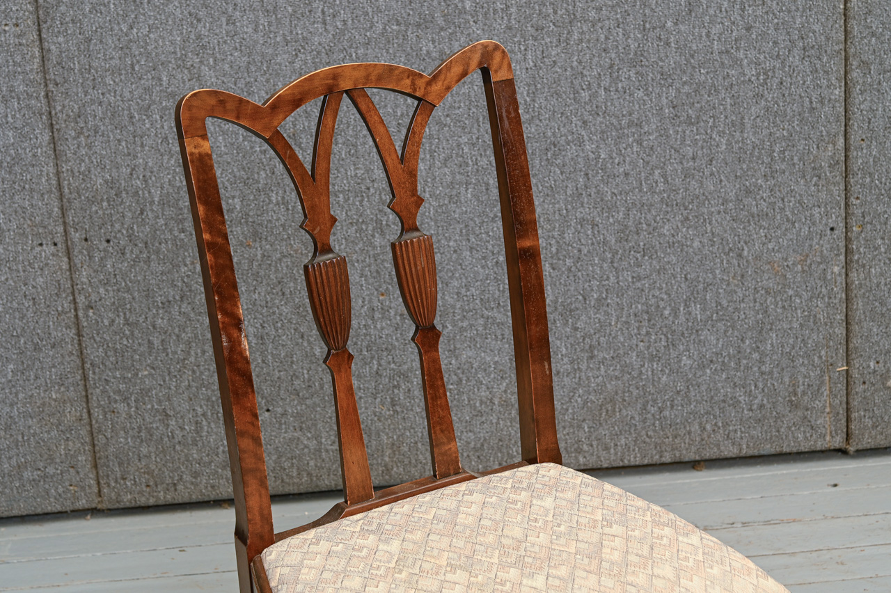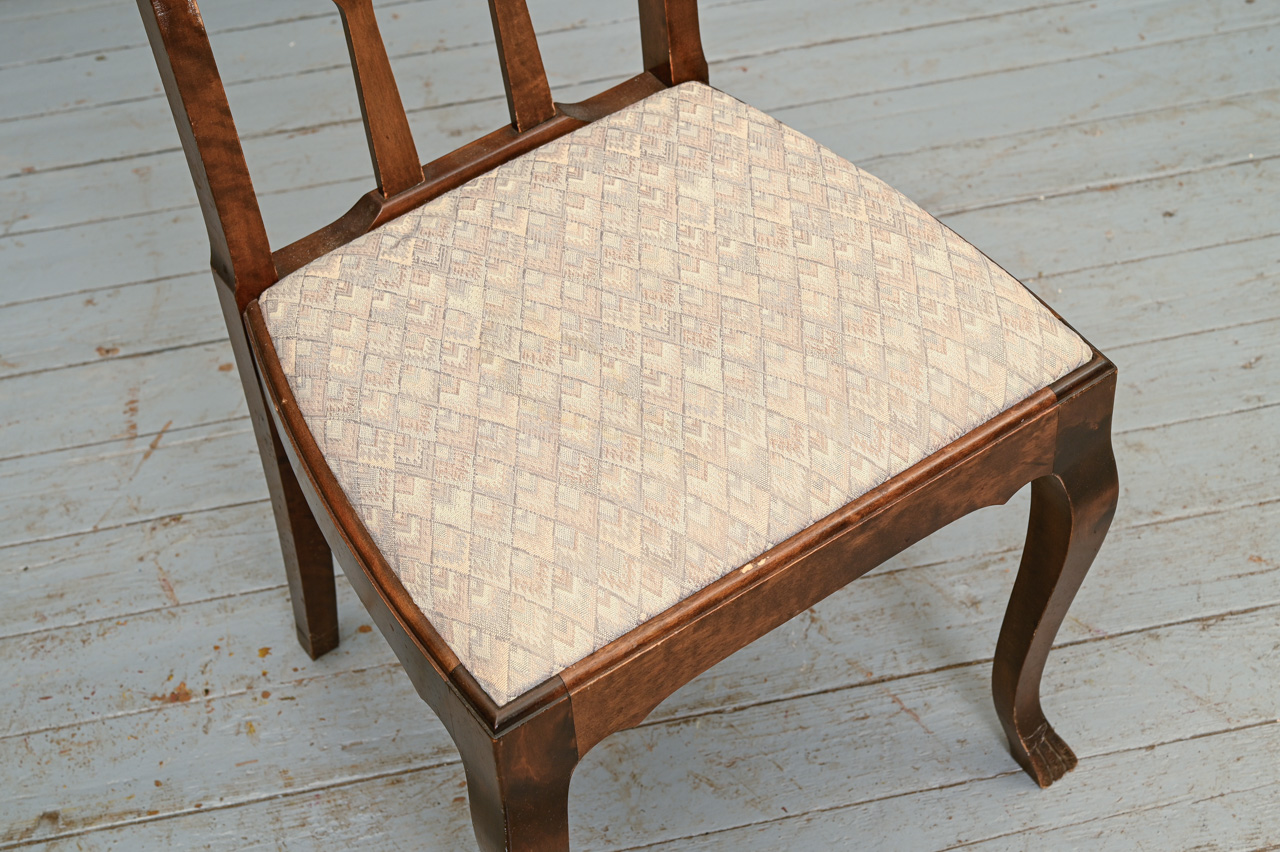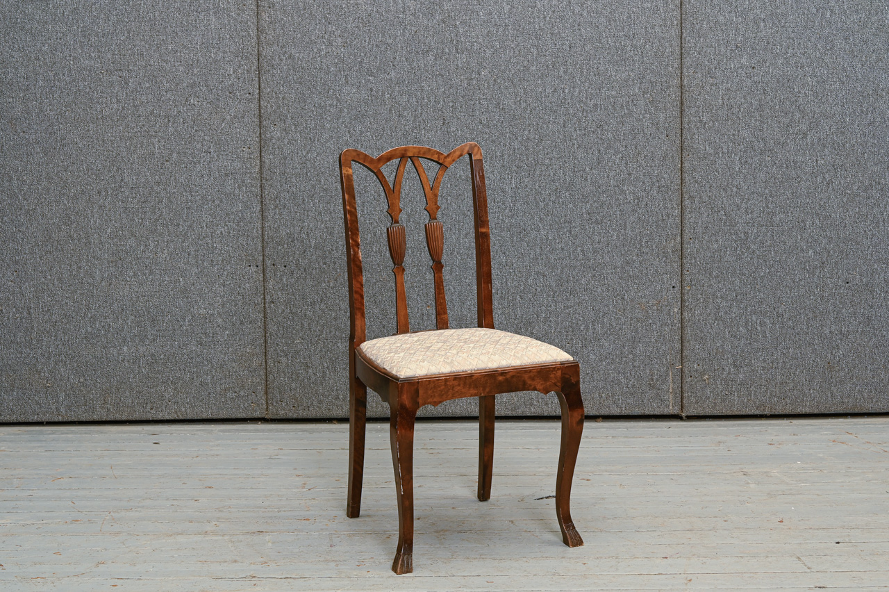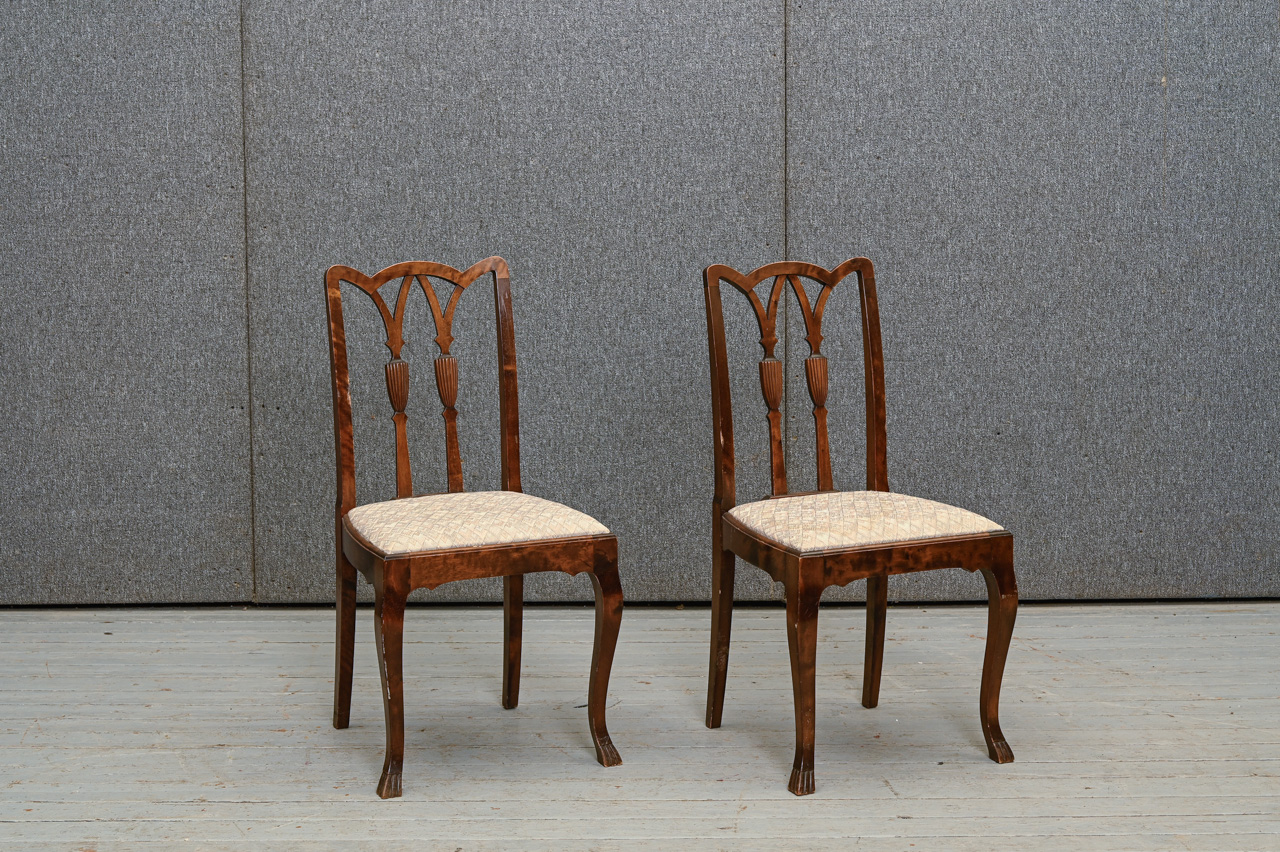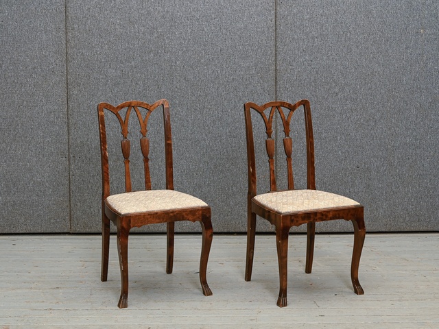 2 masīvkoka kēslu komplekts ar gaiša mēbeļu auduma sēdvirsmas tapsējumu. Komplekta kods 160139k.