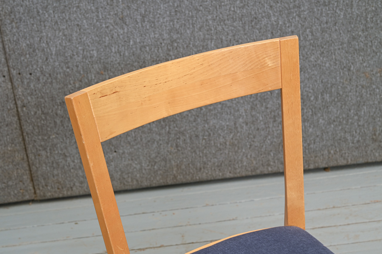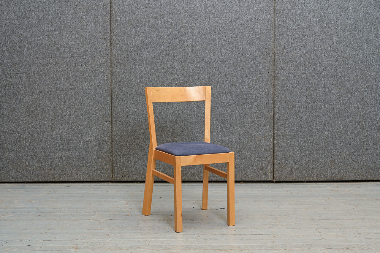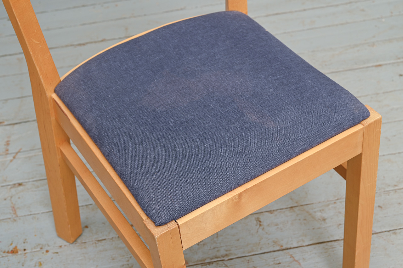 2 masīvkoka krēslu komplekts, sēdvirsma ar zila mēbeļu auduma tapsējumu. Komplekta kods 160160k.