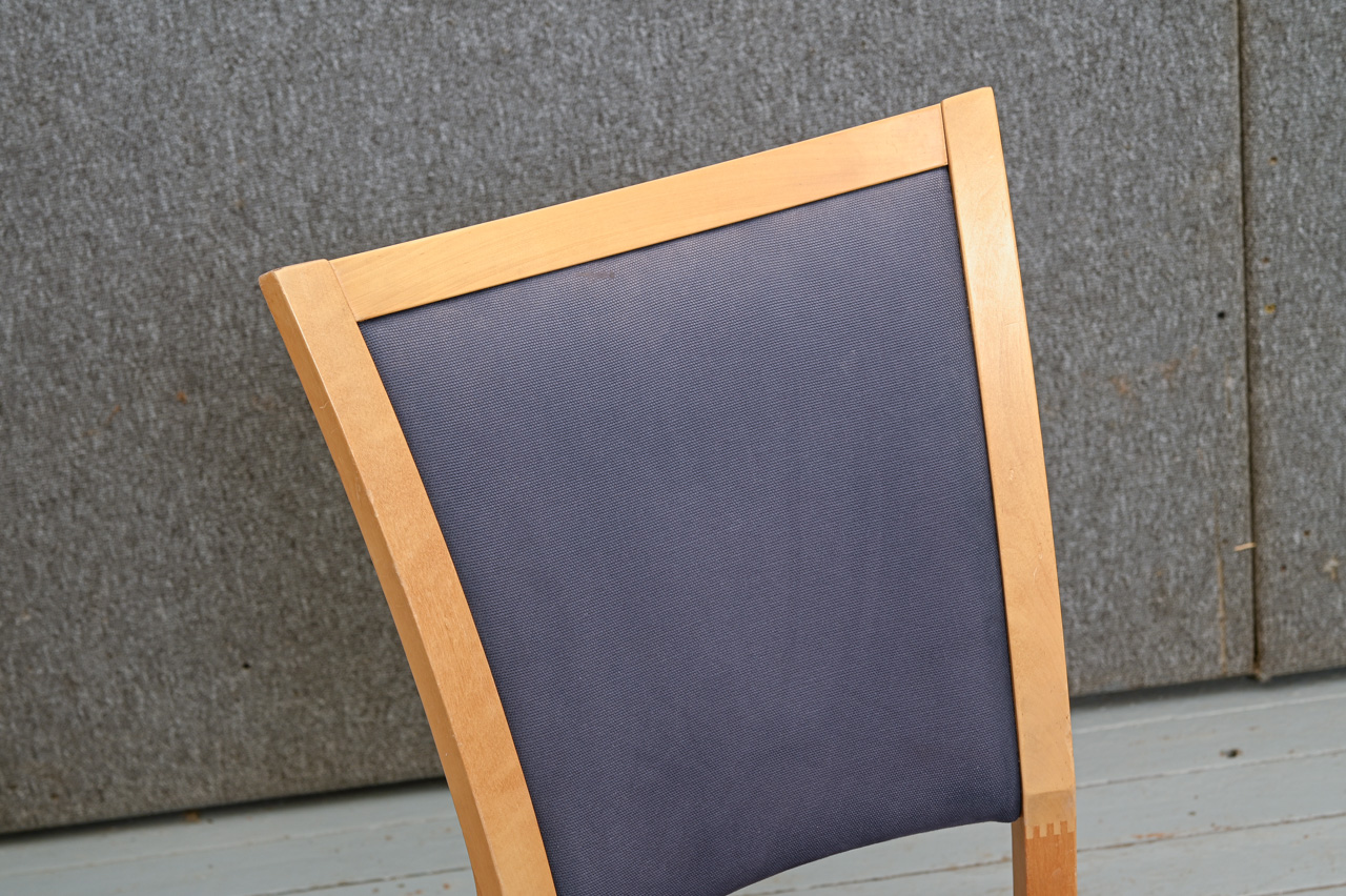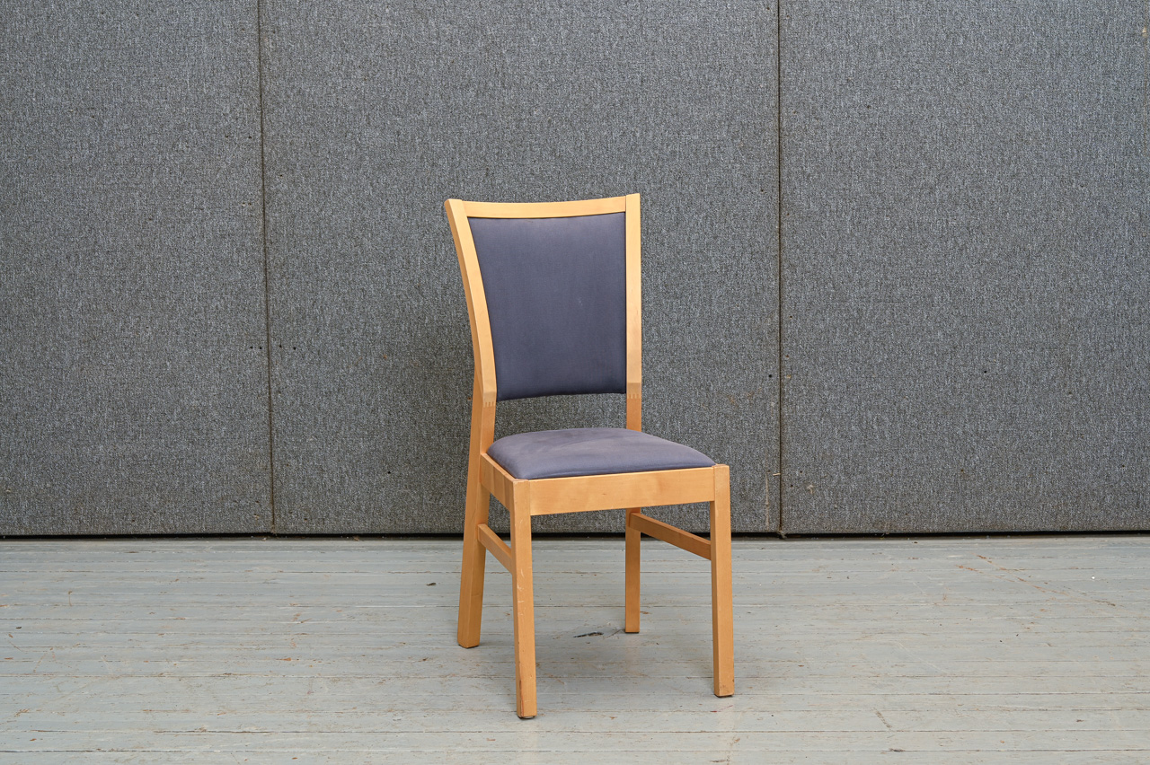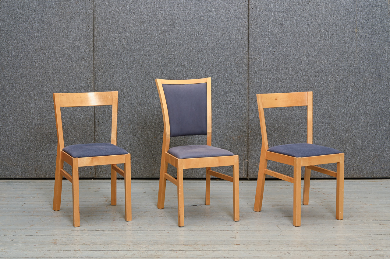 3 masīvkoka krēslu komplekts - 2 krēsli ar zila auduma sēdvirsmas tapsējumu (kods 160160) un 1 krēsls ar zila auduma tapsējumu sēdvirsmā un atzveltnē (kods 160171). Komplekta kods 160171k.