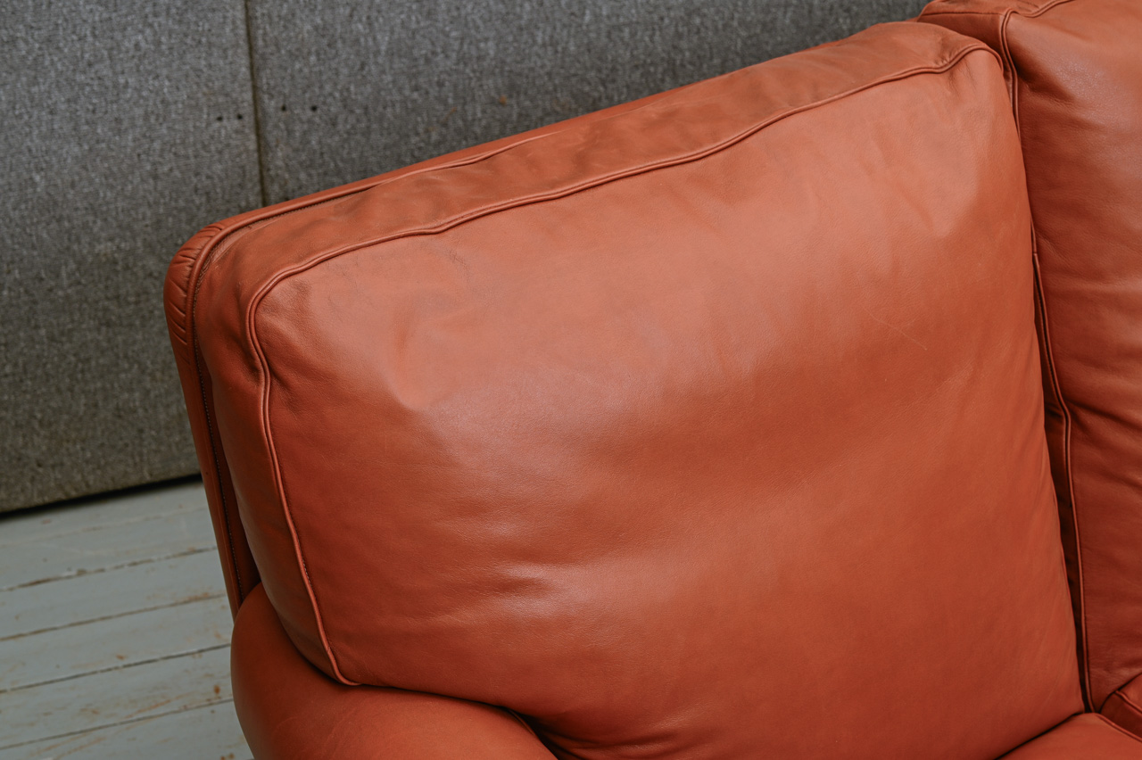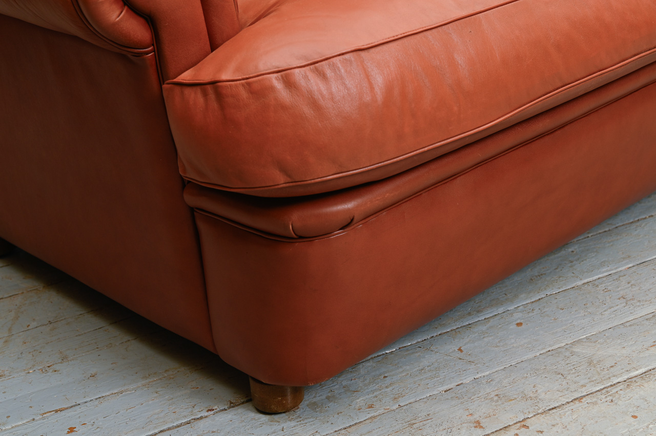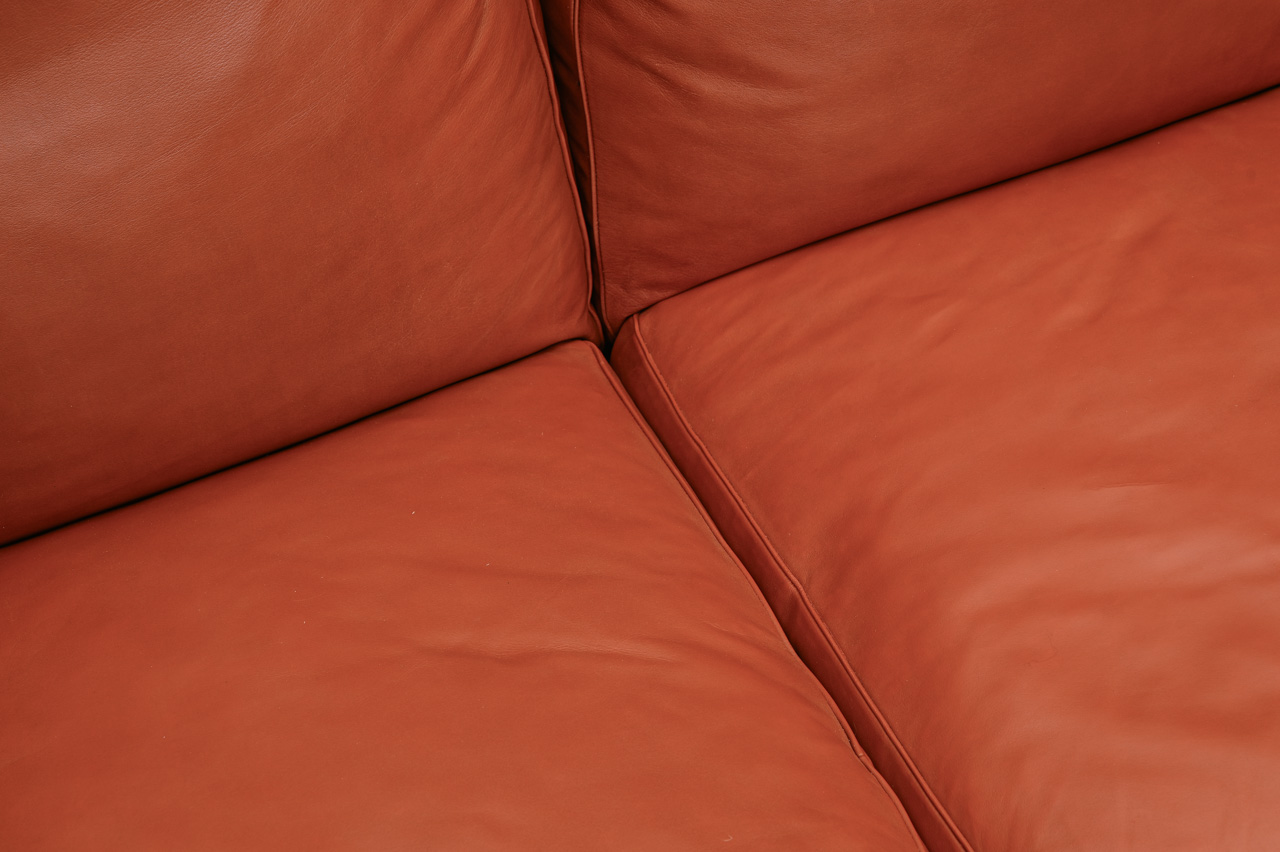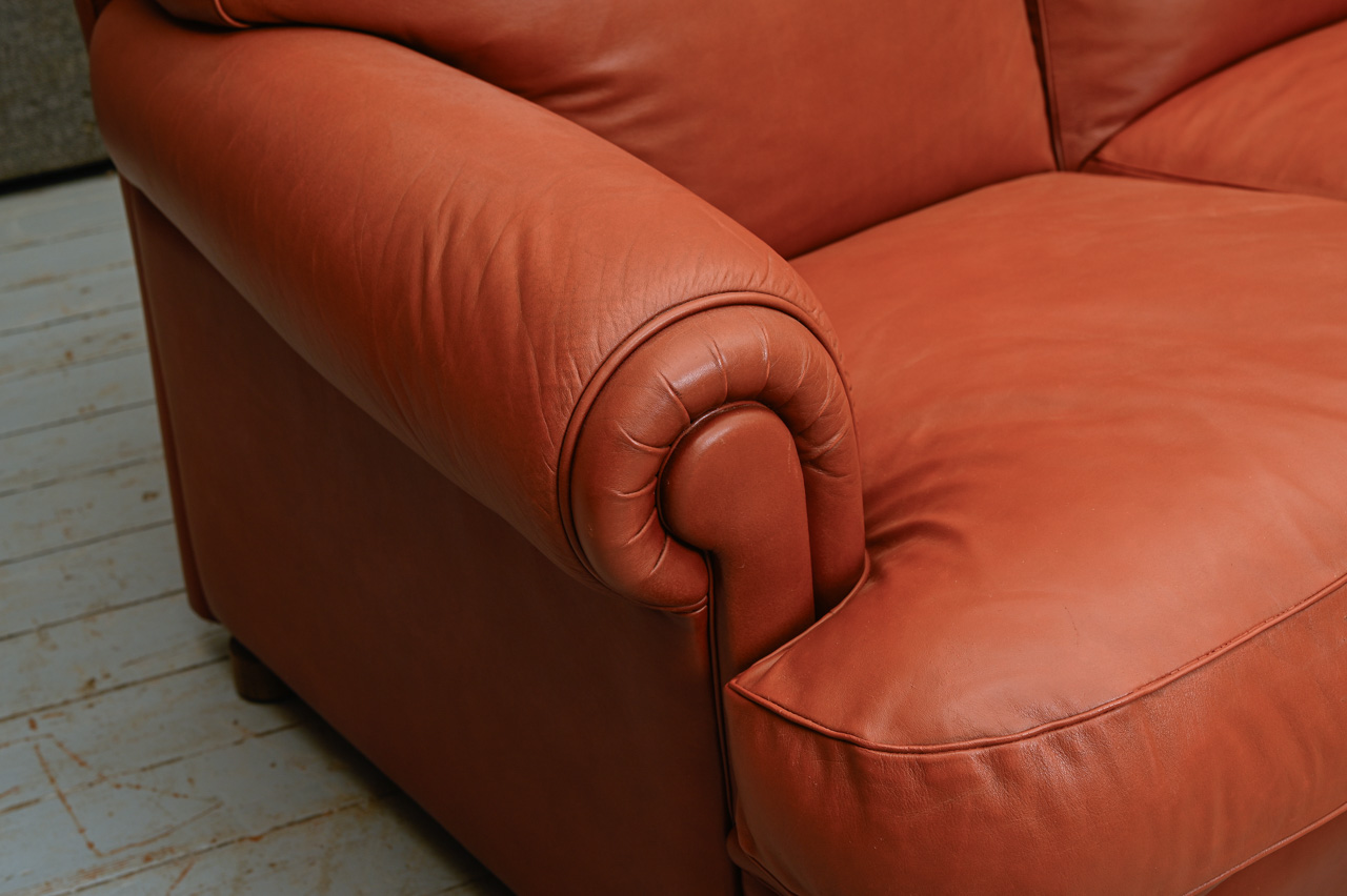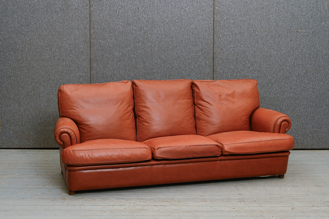 3vietīgs dīvāns, tapsēts ar rudi brūnu dabīgo ādu. Kods 660045.