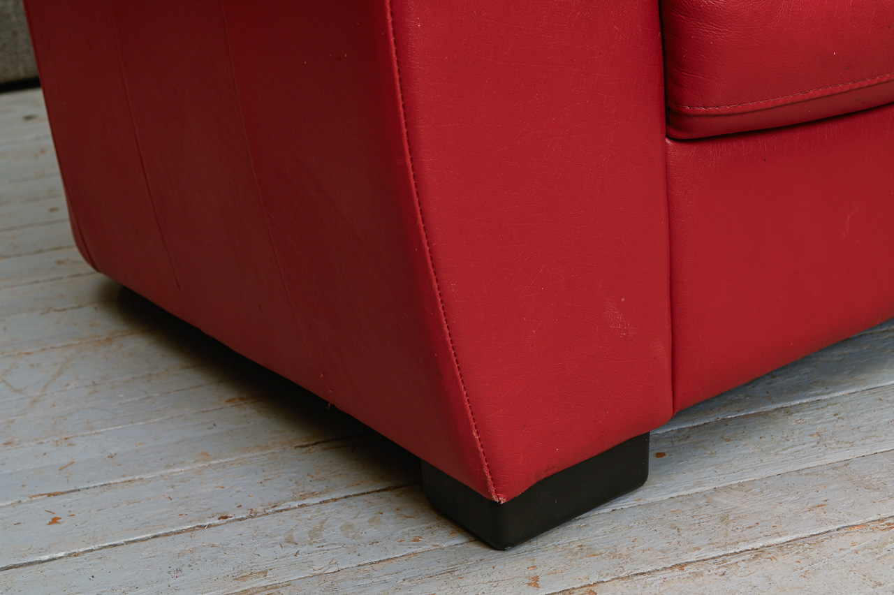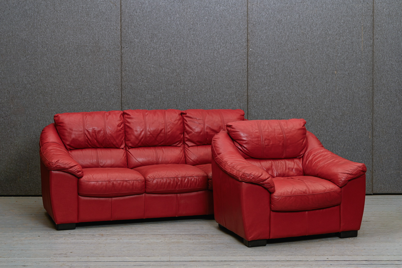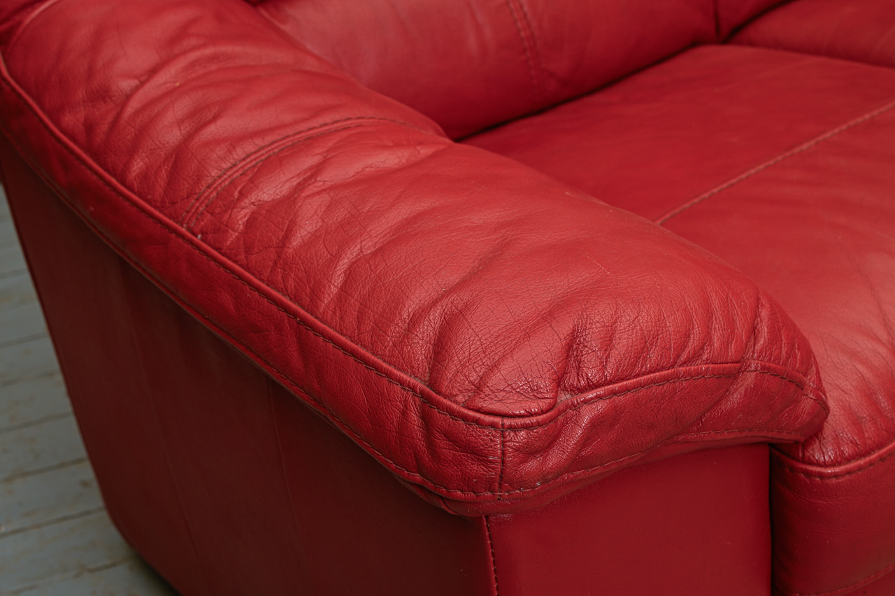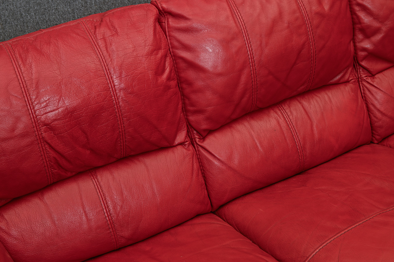 3vietīgs dīvāns, tapsēts ar sarkanu dabīgo ādu. Kods 660054. Pieejami komplekti no mīkstā krēsla, šī un 2vietīga dīvāna (komplekta kods 660054k2) kā arī šī dīvāna un mīkstā krēsla (komplekta kods 660054). Pērkot komplektu - atlaide. Lai saņemtu komplekta atlaidi, lūdzu, mūsu mājaslapā izvēlēties preci ar attiecīgo kodu.