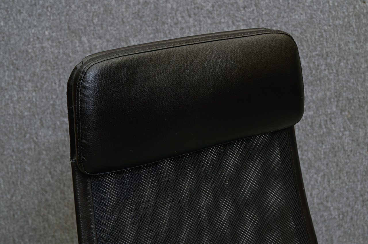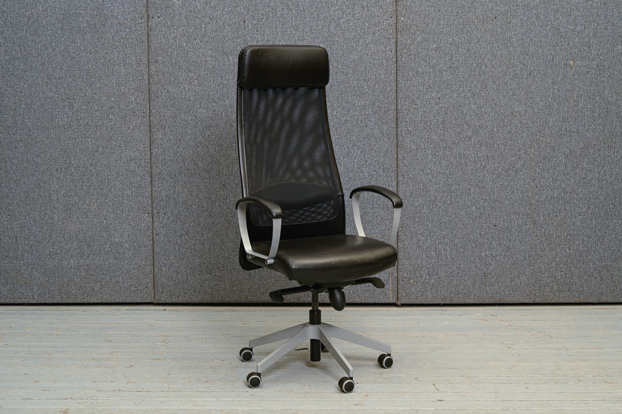 IKEA Markus biroja krēsls, tapsēts ar izturīgu melnu ādas imitāciju, atzveltnē ar melnu tīkla audumu. Krēsla sēdvirsmai paredzēta apgriešanās pa 360 grādiem ap metāla kāju, kura balstās uz 5 izturīgiem ritentiņiem. Krēslu katrs var pielāgot savām vajadzībām, tam ir regulējams sēdekļa augstums (10cm robežās). Atzveltne aprīkota ar nobloķējamu atgāžanās funkciju gandrīz pusguļus pozīcijā. Krēsls ir ideāli piemērots gan datorspēlētājiem, gan biroja darbam. Kods 160121.