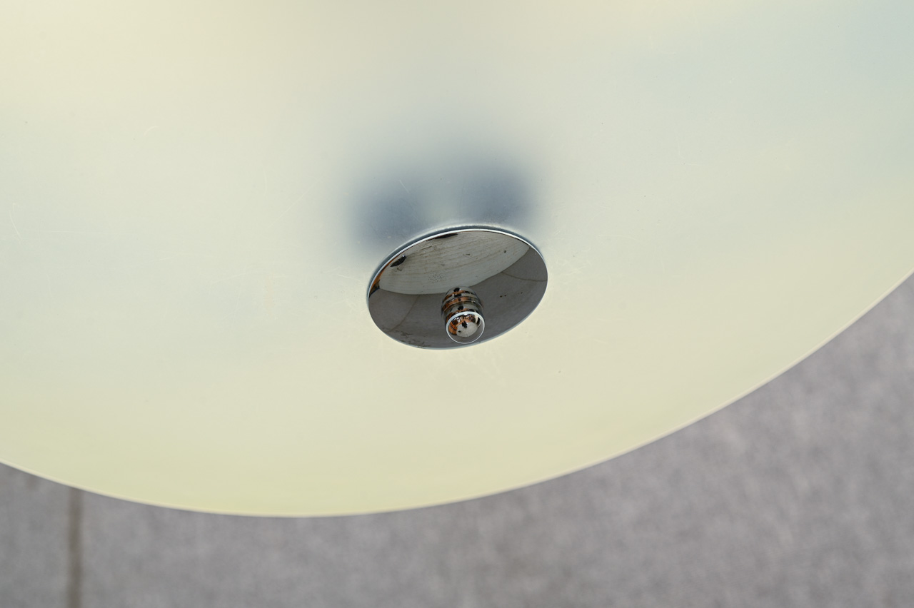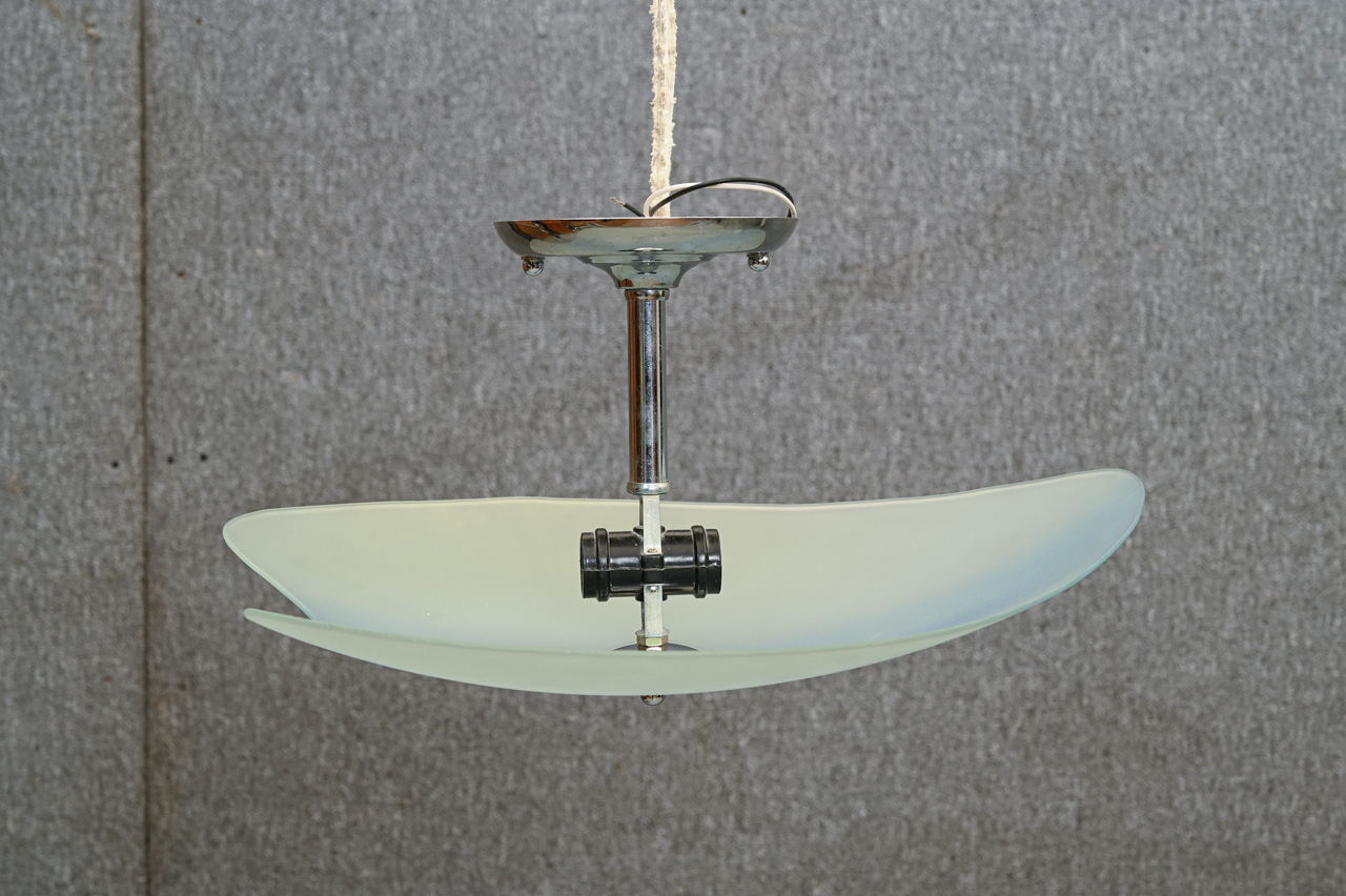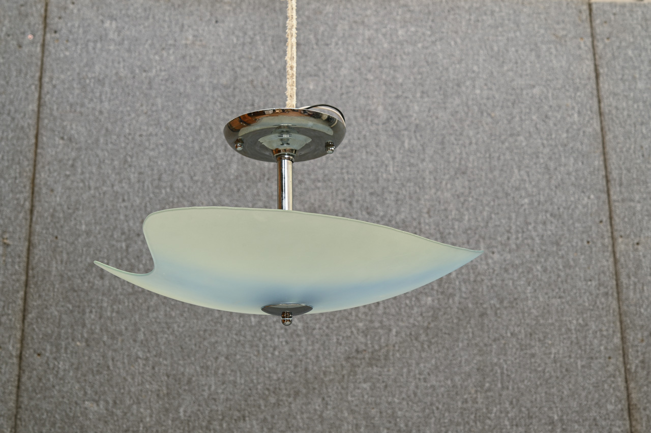 Griestu lampa ar matēta stikla, asimetriskas formas stikla kupolu. Kods 860240.
