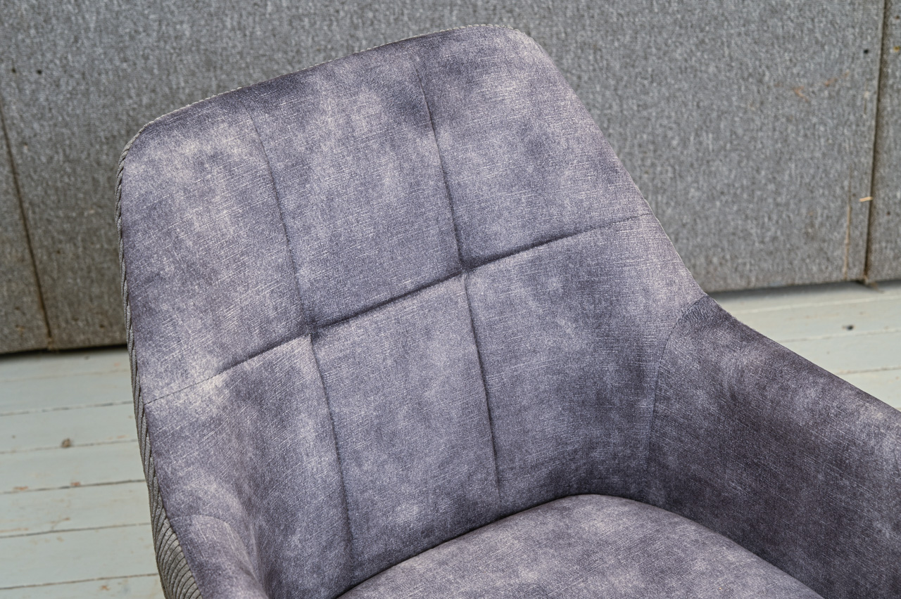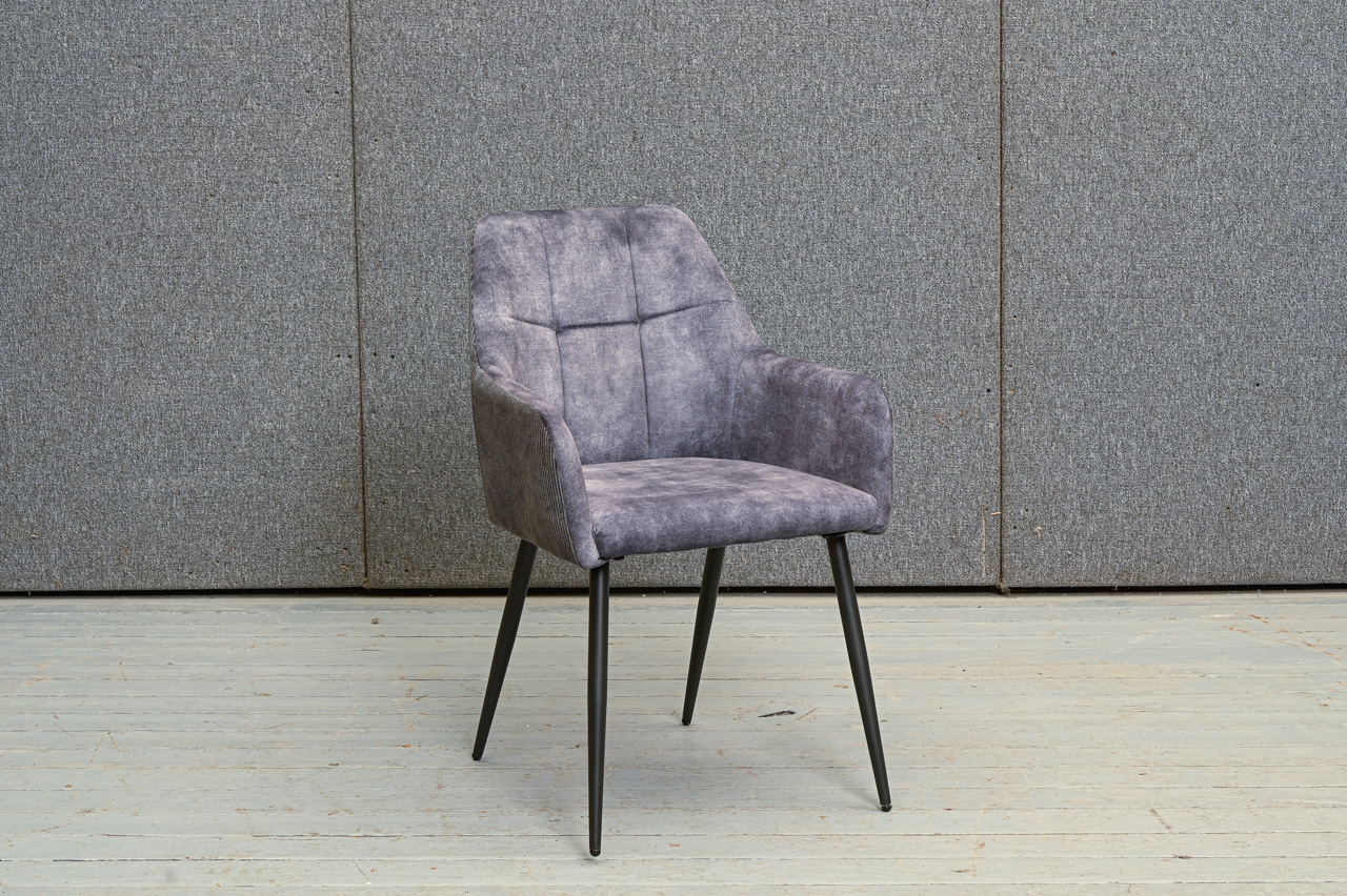 Krēsls ar paroceņiem, tapsēts ar tumši pelēku mēbeļu audumu. Nelietots, salikts. Kods 108328.