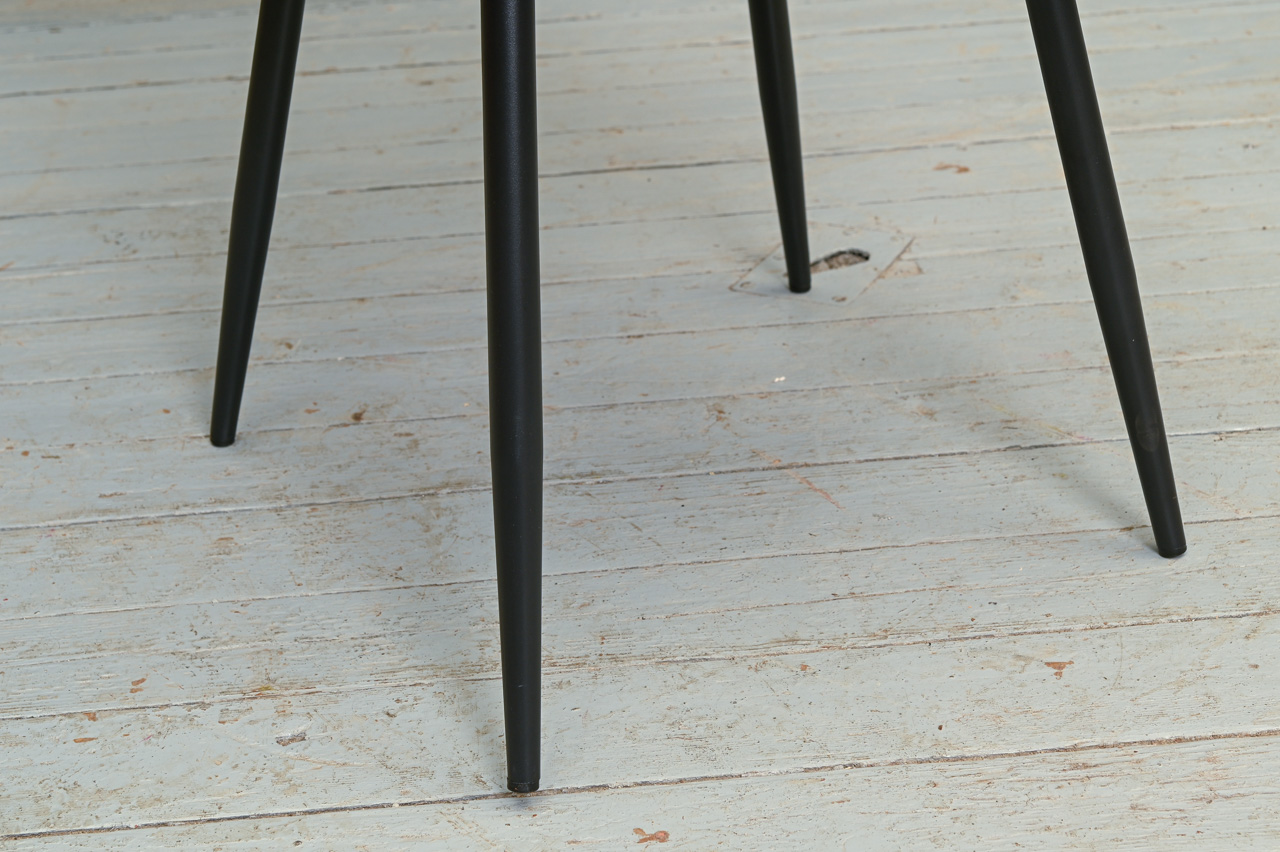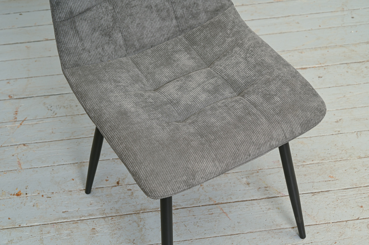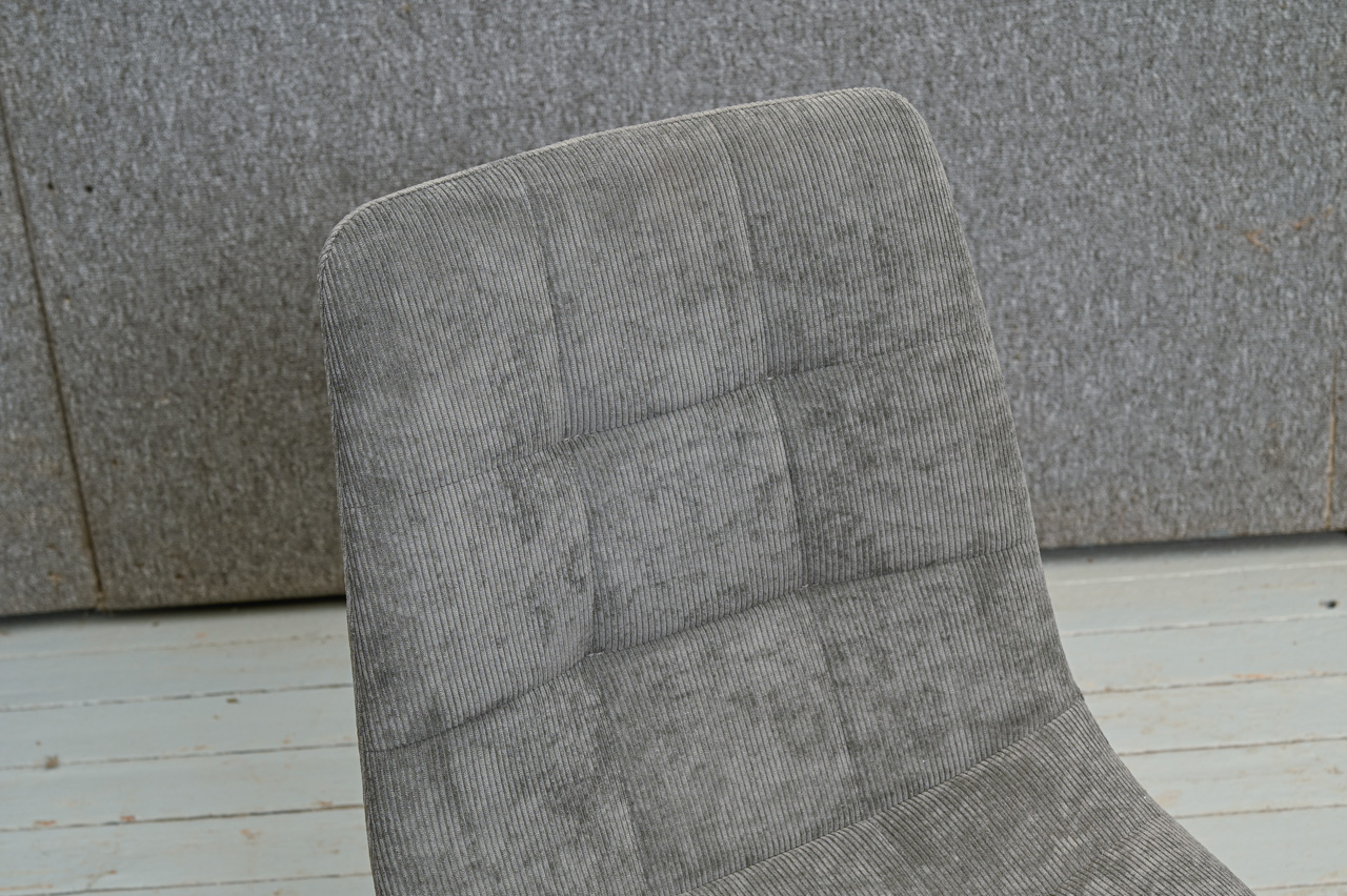 Krēsls uz melnām metāla kājiņām, tapsēts ar pelēku mēbeļu audumu. Nelietots, salikts. Kods 108368.