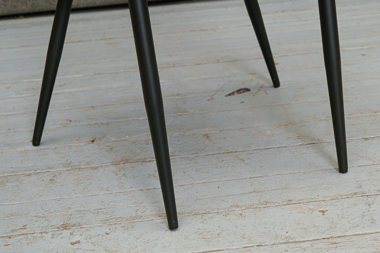 Krēsls ar noapaļotu atzveltni, tapsēts ar pelēku velveta tipa mēbeļu audumu. Nelietots, salikts. Kods 108379.