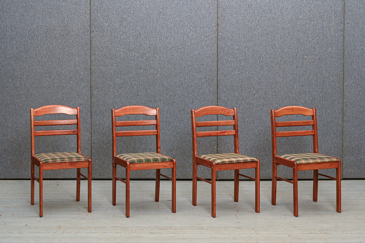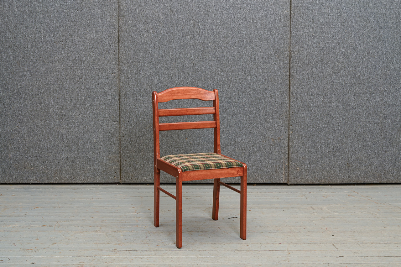 Rudi beicēts masīvkoka krēsls ar rūtaina mēbeļu auduma sēdvirsmas tapsējumu. Kods 160115. Cena norādīta vienam krēslam. Pieejami 4 šādi krēsli. Pērkot 4 krēslu komplektu - atlaide. Lai saņemtu komplekta atlaidi, lūdzu, mūsu mājaslapā izvēlēties preci ar kodu 160115k.