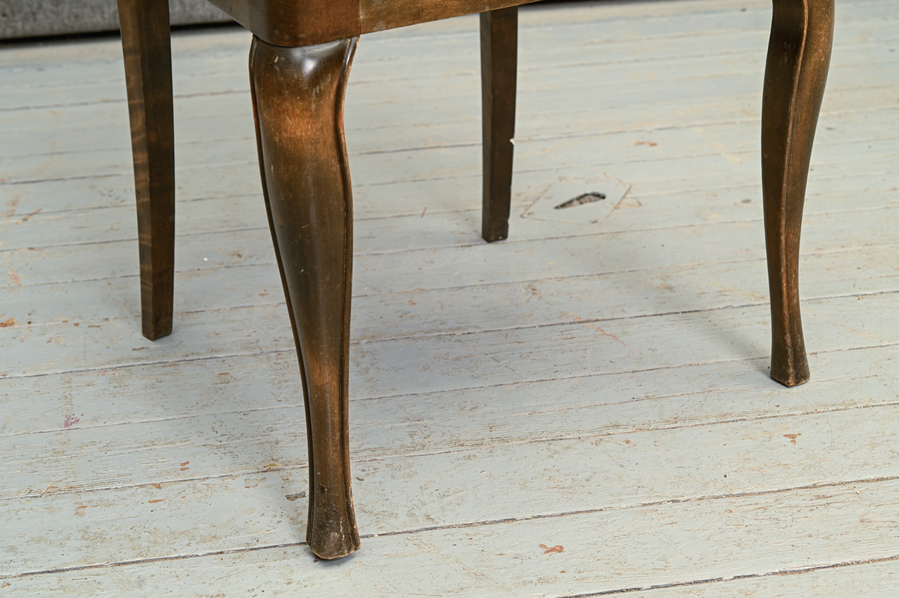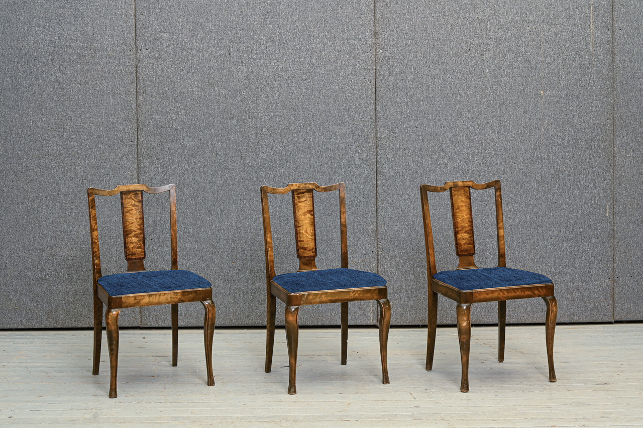 Priedes koka krēsls ar cēlkoka finierējumu. Sēdvirsma ar melna auduma tapsējumu ar zelta krāsas ornamentiem ar austrumniecisku tematiku. Kods 160126. Cena norādīta vienam krēslam. Pieejami 3 šādi krēsli. Pērkot 3 krēslu komplektu - atlaide. Lai saņemtu komplekta atlaidi, lūdzu, mūsu mājaslapā izvēlēties preci ar kodu 160126k.