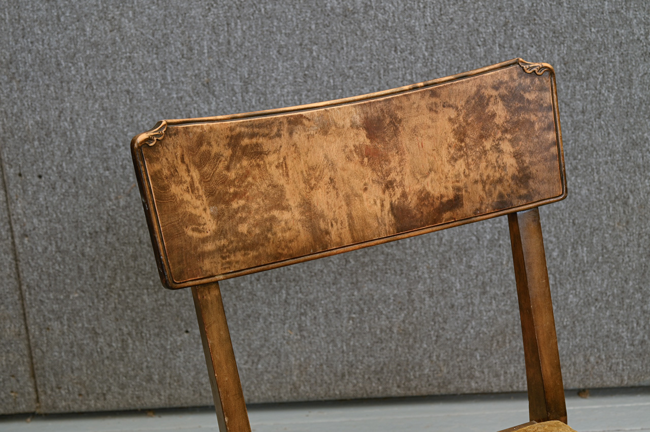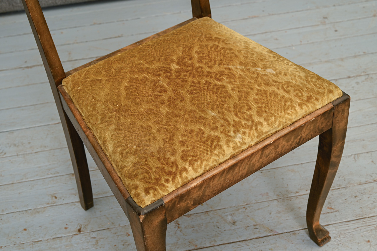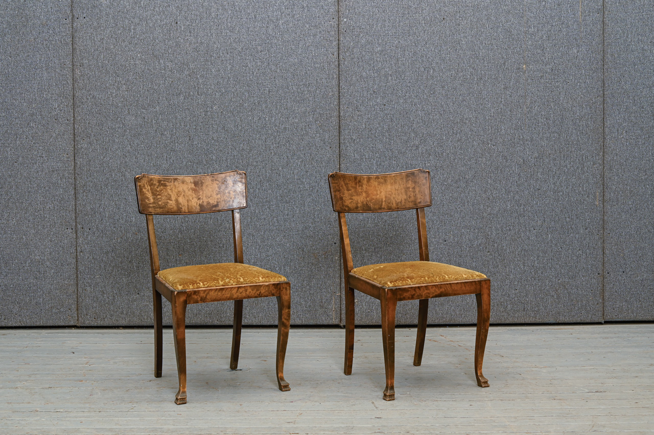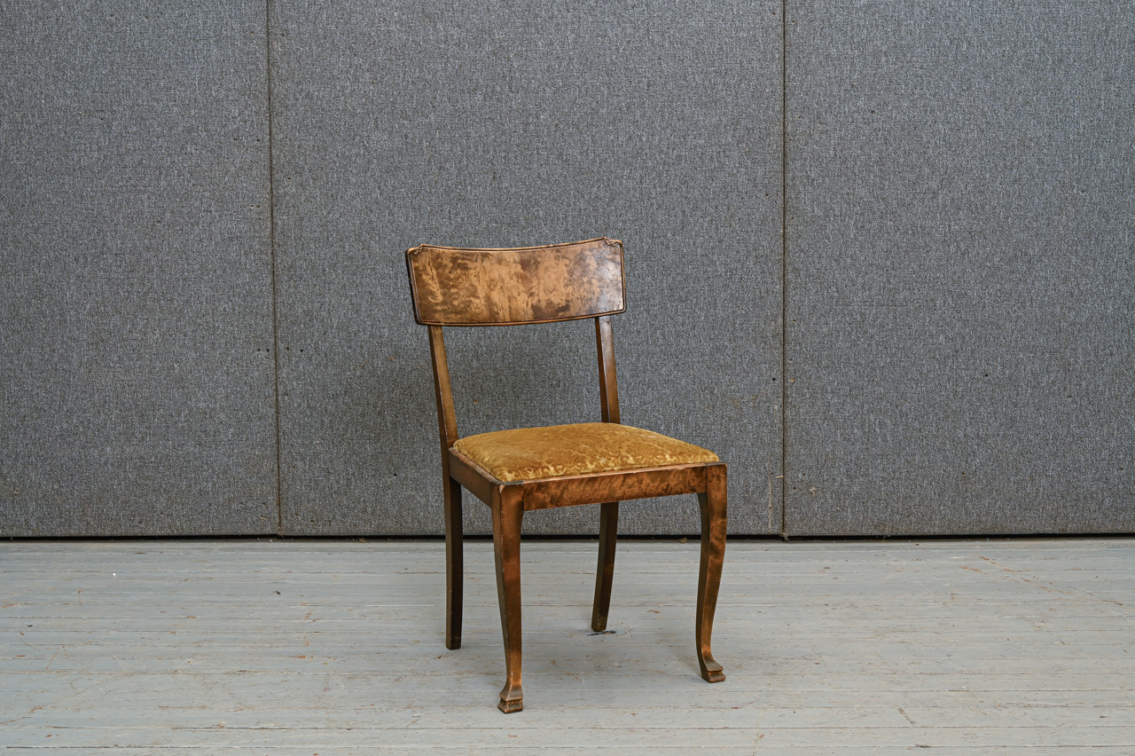 Masīvkoka krēsls ar cēlkoka finierējumu, sēdvirsma ar samtaina mēbeļu auduma tapsējumu ar ornamentu. Kods 160142. Cena norādīta vienam krēslam. Pieejami 2 šādi krēsli. Pērkot 2 krēslu komplektu - atlaide. Lai saņemtu komplekta atlaidi, lūdzu, mūsu mājaslapā izvēlēties preci ar kodu 160142k.