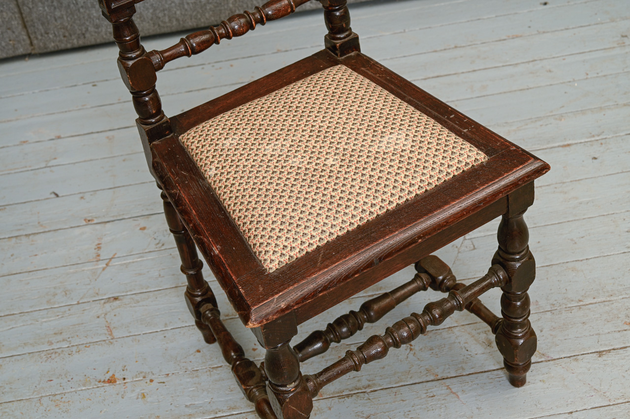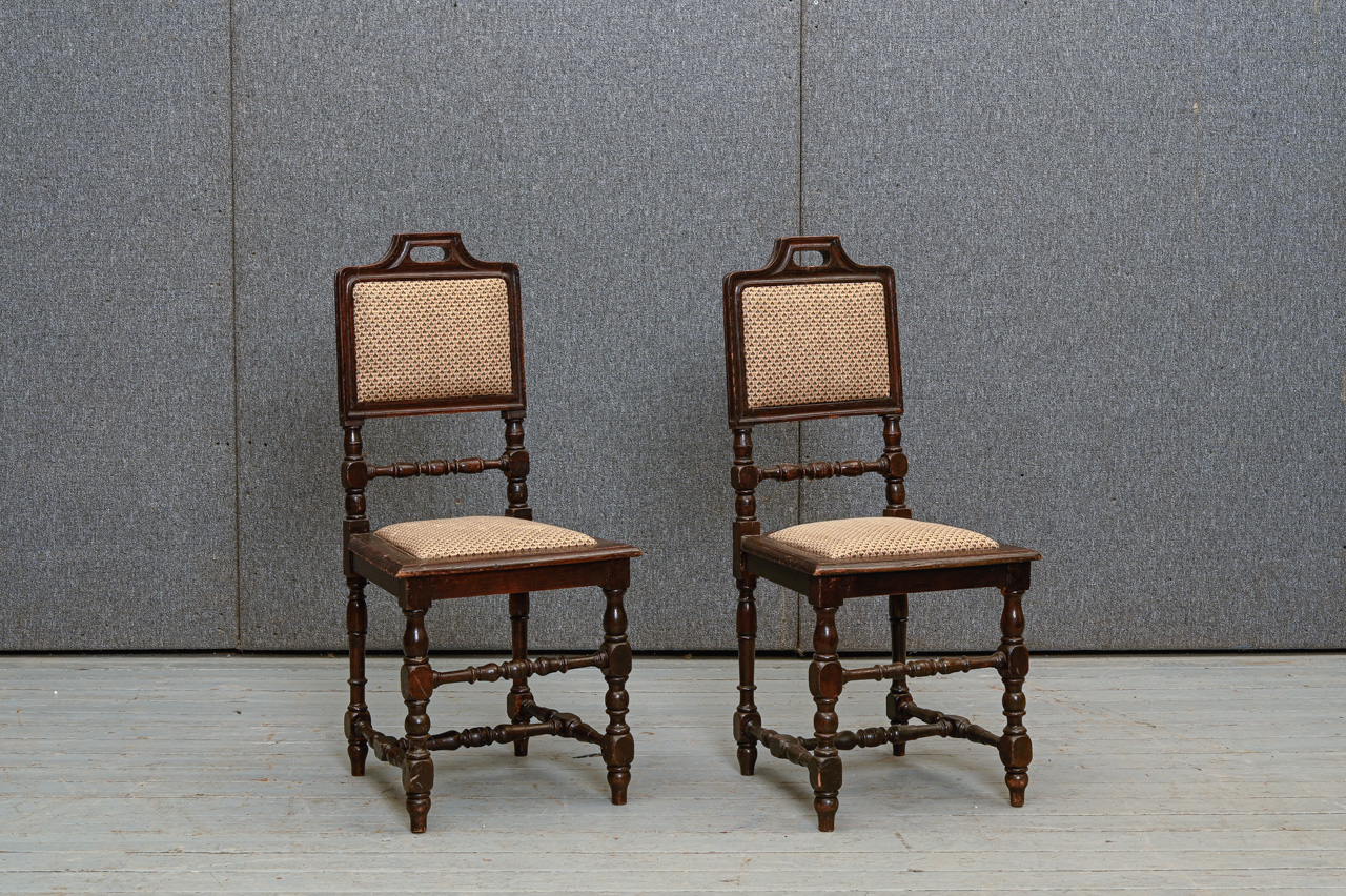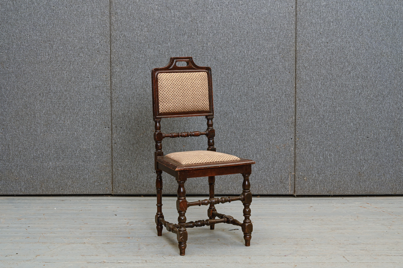Tumši krāsots ozola masīvkoka krēsls. Sēdvirsmas un atzveltnes pildiņš ar raiba mēbeļu auduma tapsējumu. Kods 160156. Cena norādīta vienam krēslam. Pieejami 2 šādi krēsli. Pērkot 2 krēslu komplektu - atlaide. Lai saņemtu komplekta atlaidi, lūdzu, mūsu mājaslapā izvēlēties preci ar kodu 160156k.