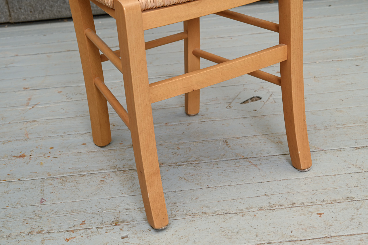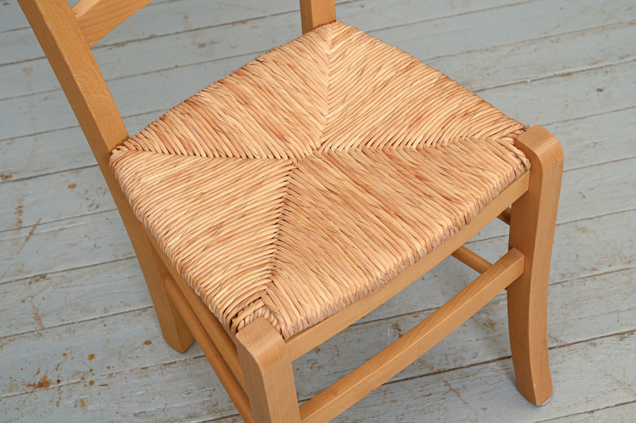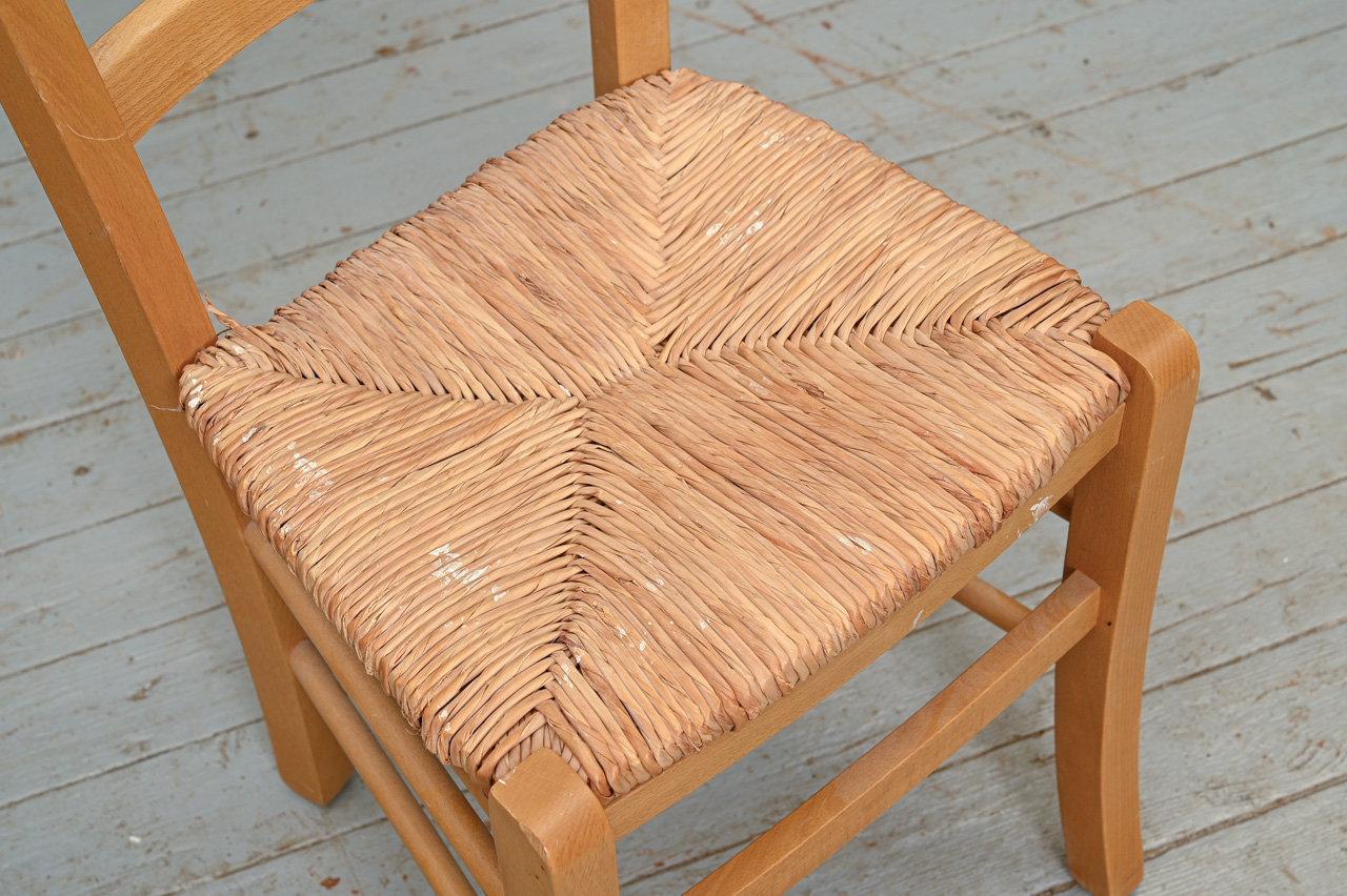 Masīvkoka kēsls ar dabīga pinuma sēdvirsmu. Krēslam vietām ir krāsas traipi, skatīt attēlā. Kods 160166. Cena norādīta vienam krēslam. Pieejami 4 šādi krēsli. Pērkot 4 krēslu komplektu - atlaide. Lai saņemtu komplekta atlaidi, lūdzu, mūsu mājaslapā izvēlēties preci ar kodu 160166k.