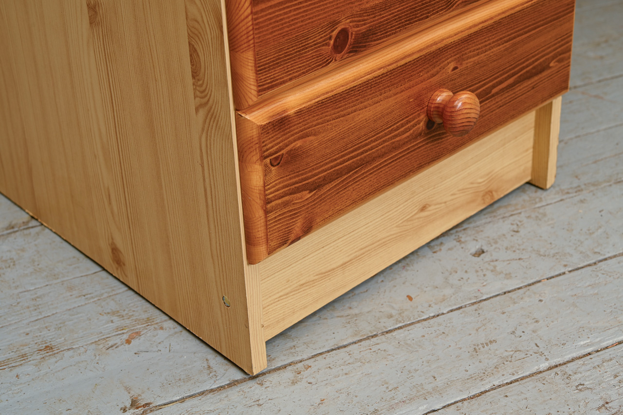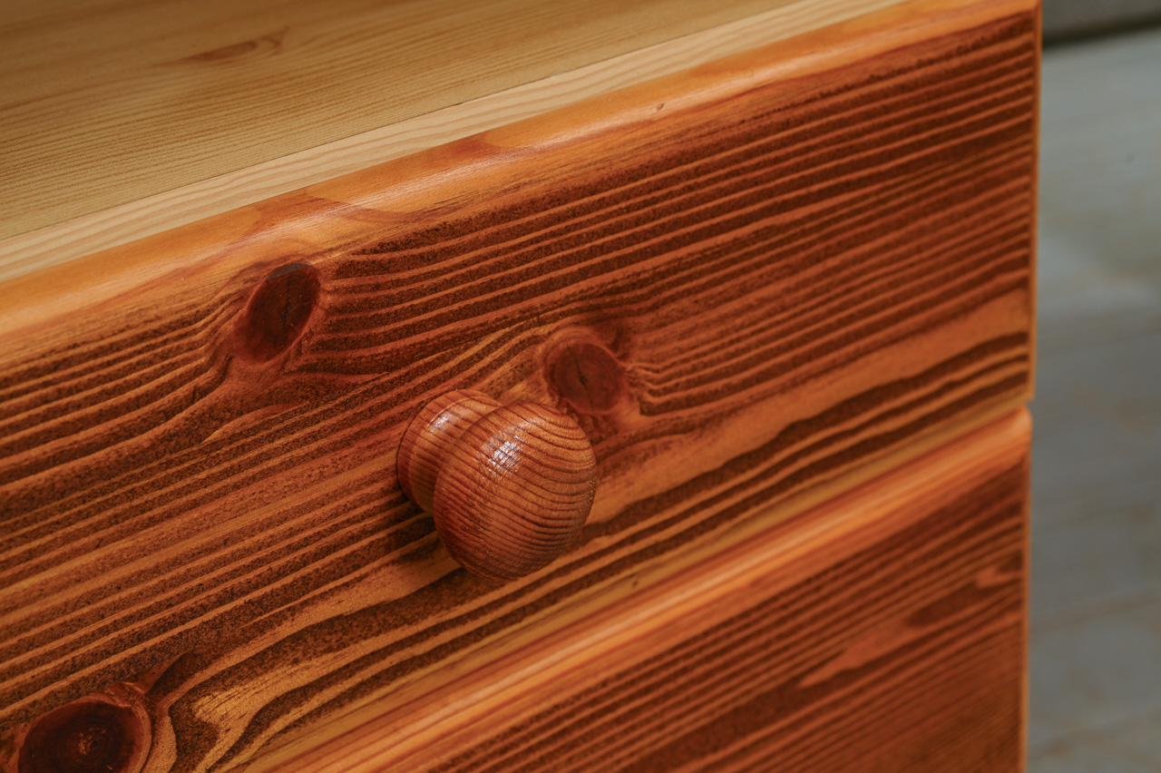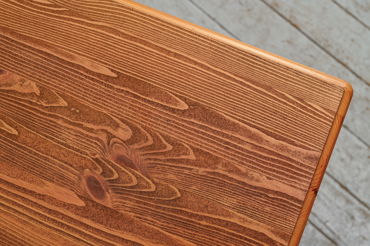 Kokskaidu plātnes rakstāmgalds ar beicētas un eļļotas priedes koka virsmu un atvilktņu fasādi. Kods 360127.
