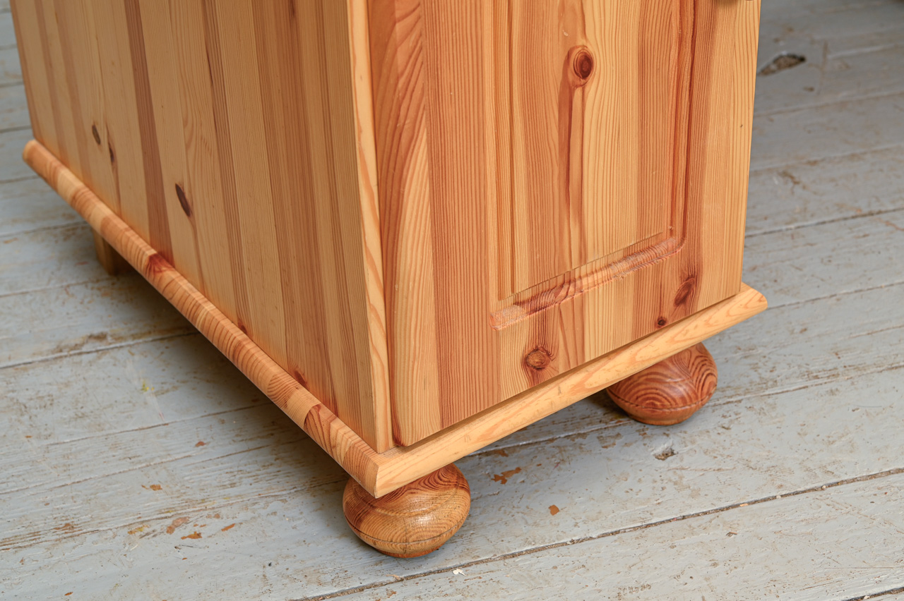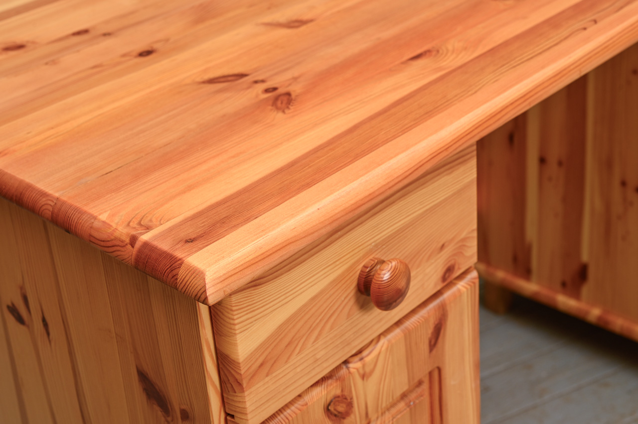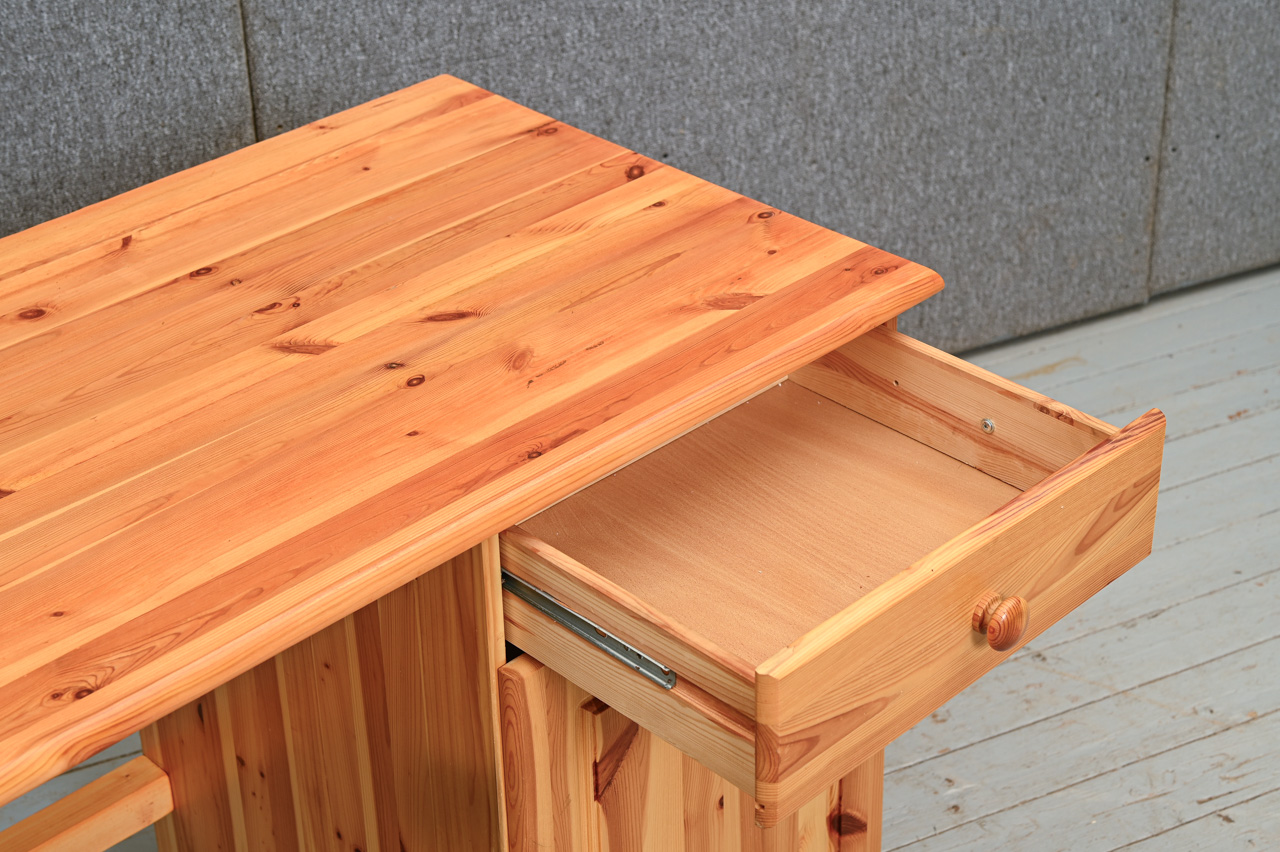 Priedes koka rakstāmgalds ar 2 skapīšiem. Gaiši beicēts, lakots. Kods 360115.