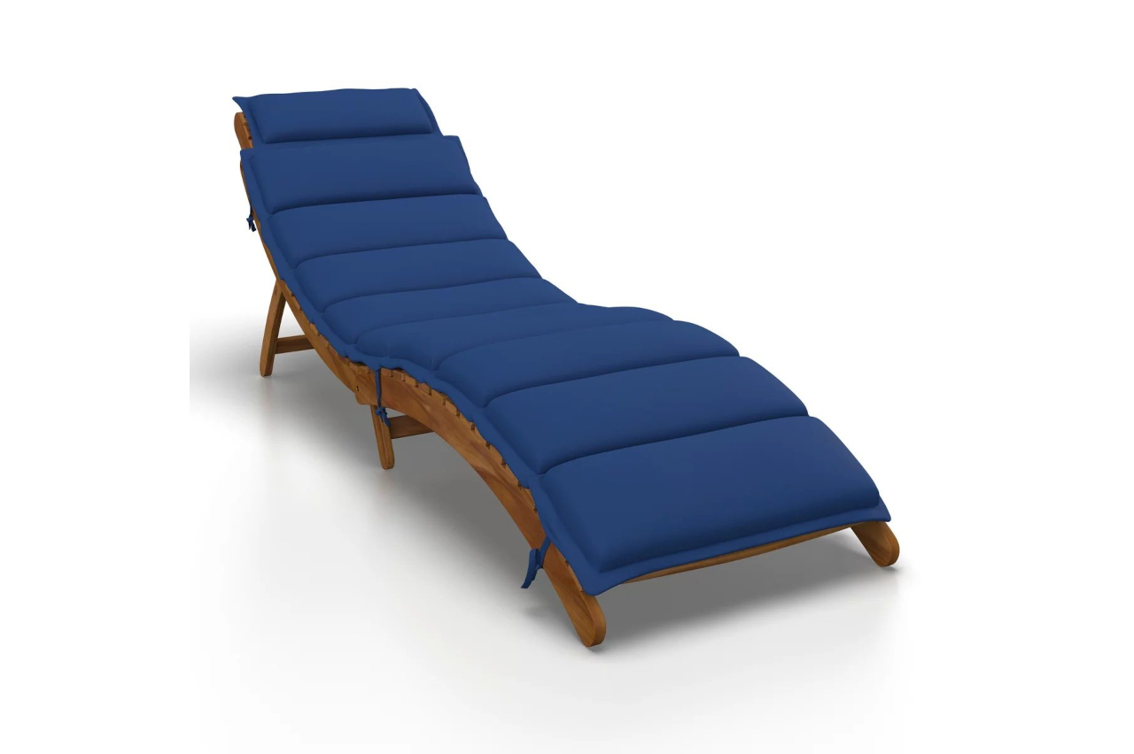 Saliekams akācijas masīvkoka sauļošanās zvilnis ar mīksto paliktni un mazu spilvenu galvas atbalstam. Zvilnis ir saliekams uz pusēm un ar roktura palīdzību ērti un viegli pārnēsājams. Nelietots, ražotāja iepakojumā. Kods 808332Z. Pieejami zviļņi ar dažādu krāsu mīkstajiem paliktņiem. Pieejamās krāsas - zils (808332Z), bēšs (808332B), pelēks (808332P). Lūdzam mūsu mājaslapā izvēlēties jums vēlāmās krāsu, meklētājā ievadot kodu 808332B vai 808332P.