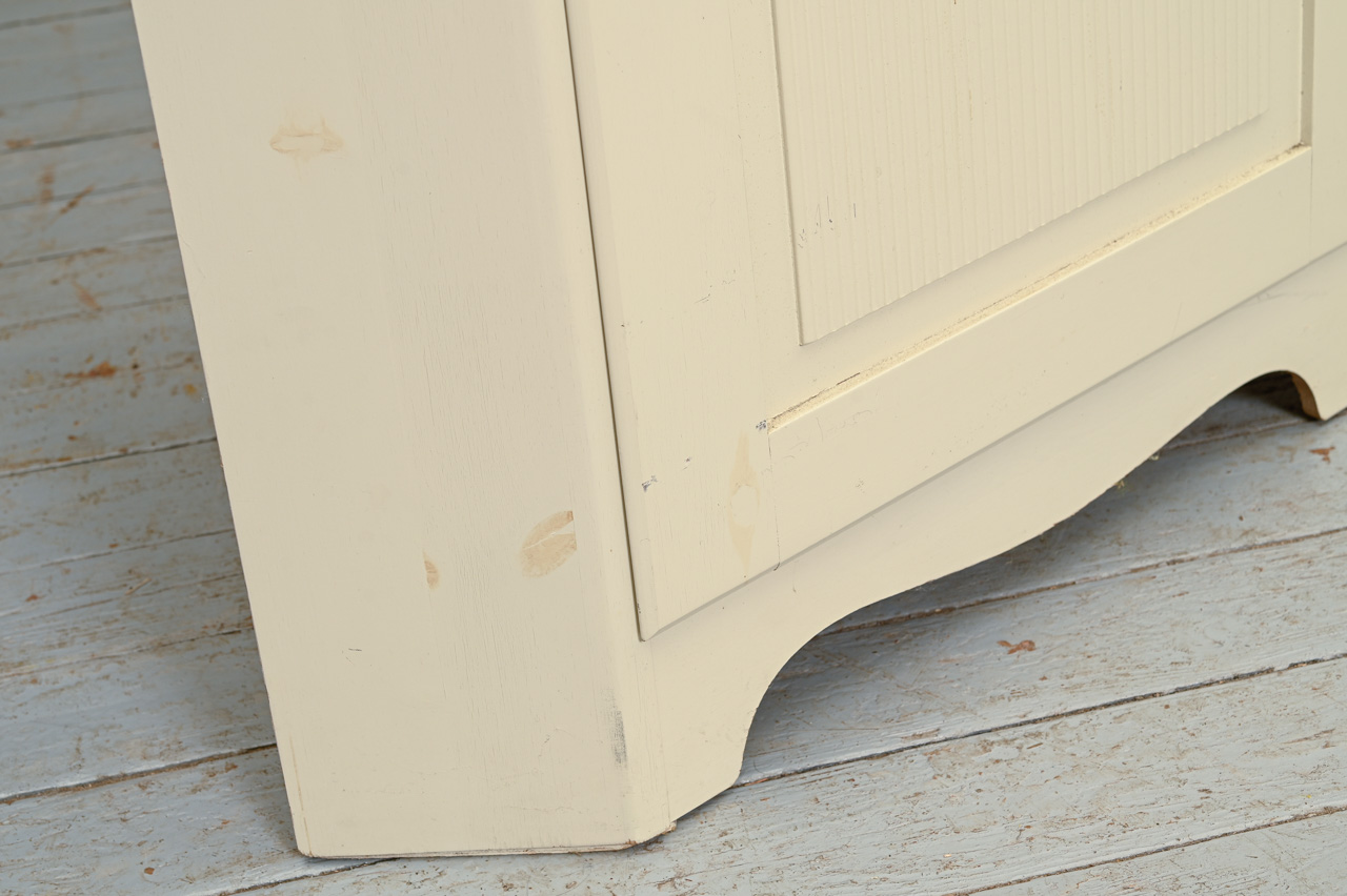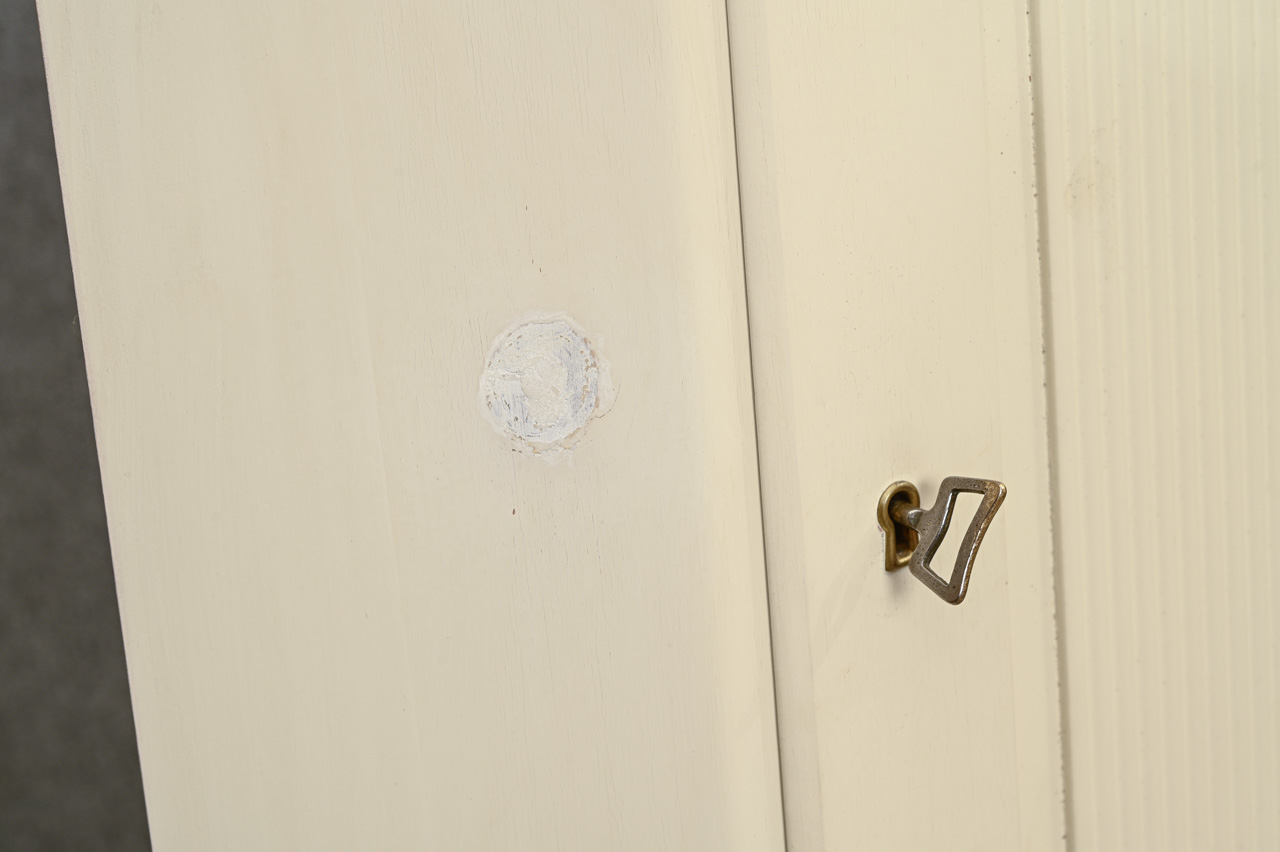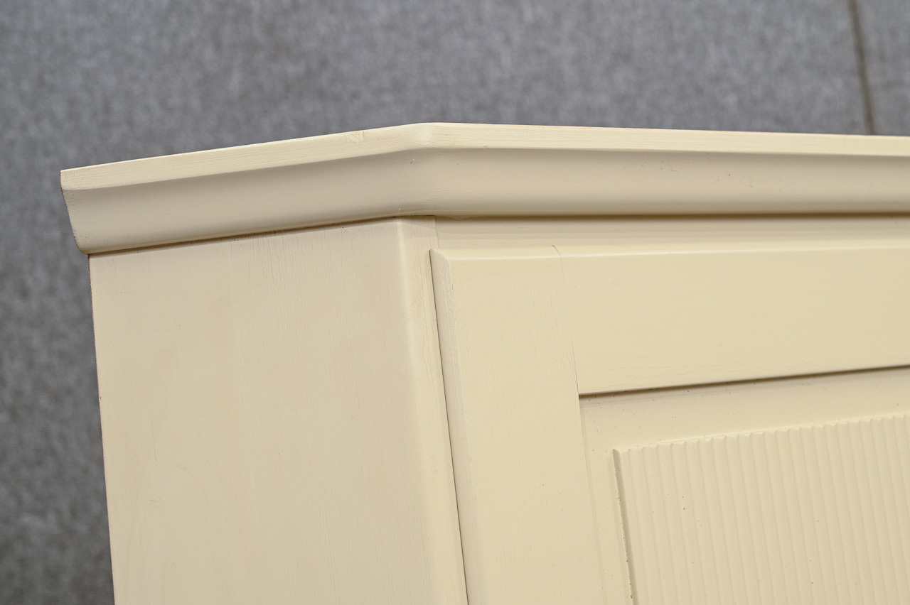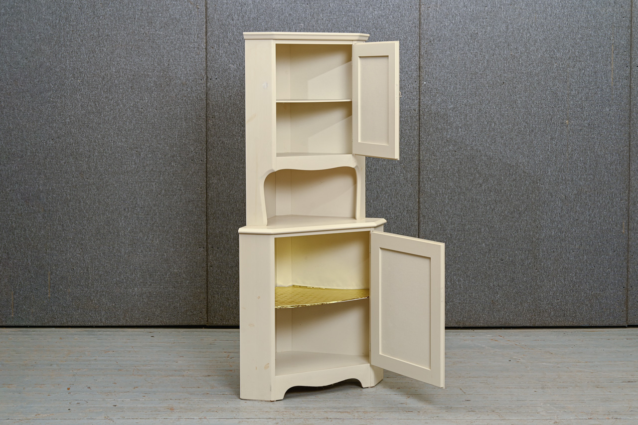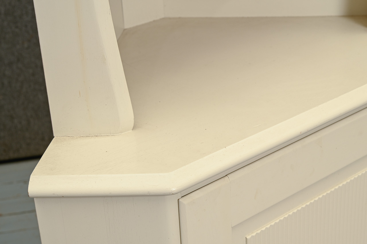 Balti krāsota priedes koka stūra bufete. Kods 402107. Pieejama līdzīga stūra bufete, kods 402108.