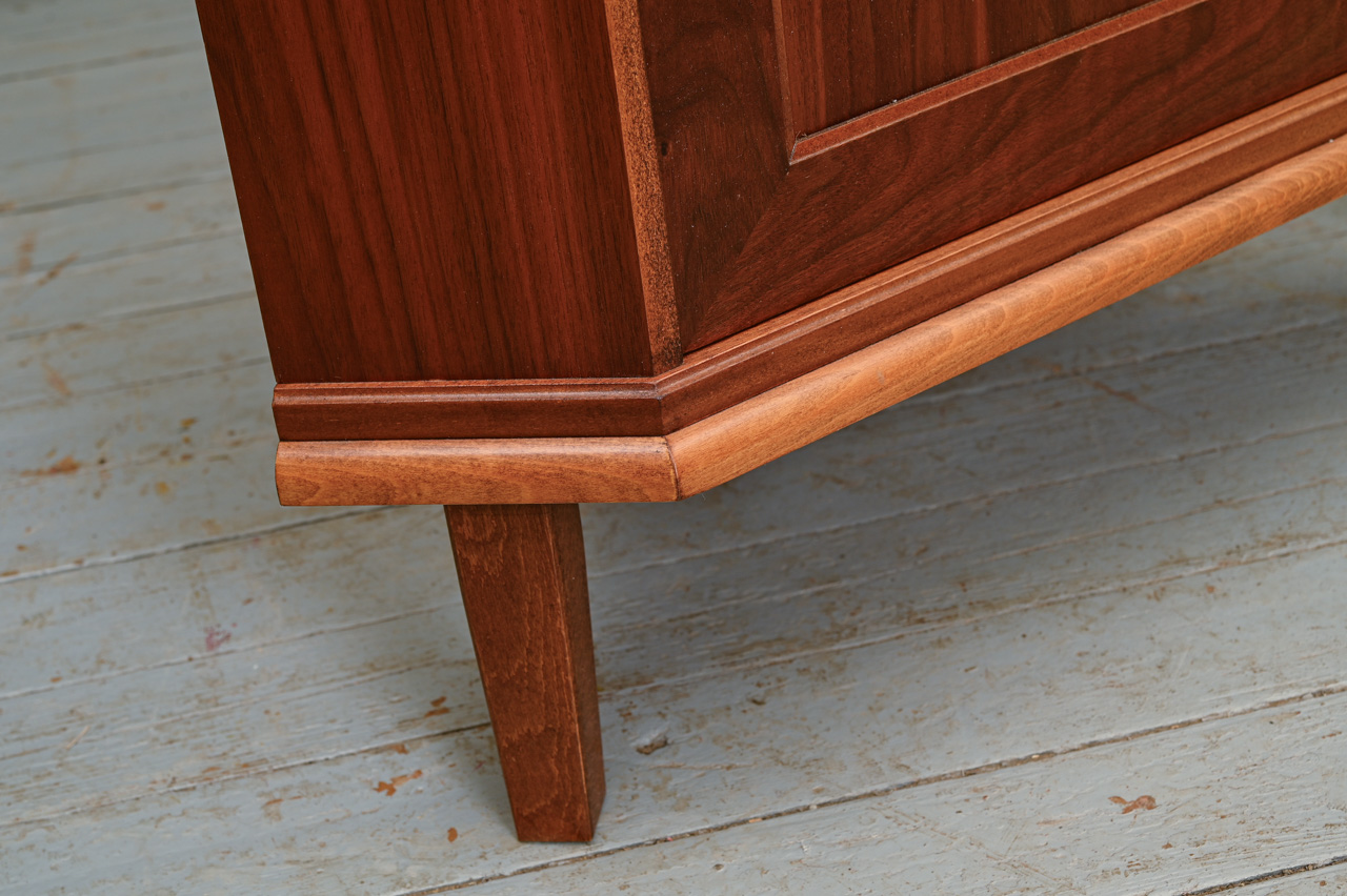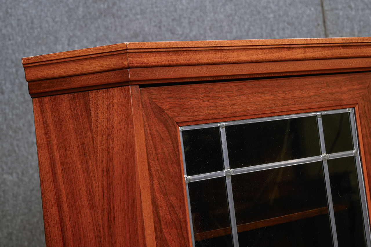 Stūra bufete uz 16cm augstām kājiņām. MDF ar dabīga koka finierējumu un detaļām. Kods 460117.