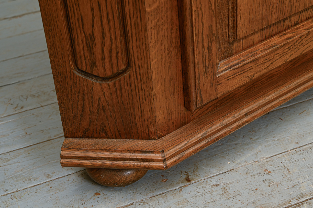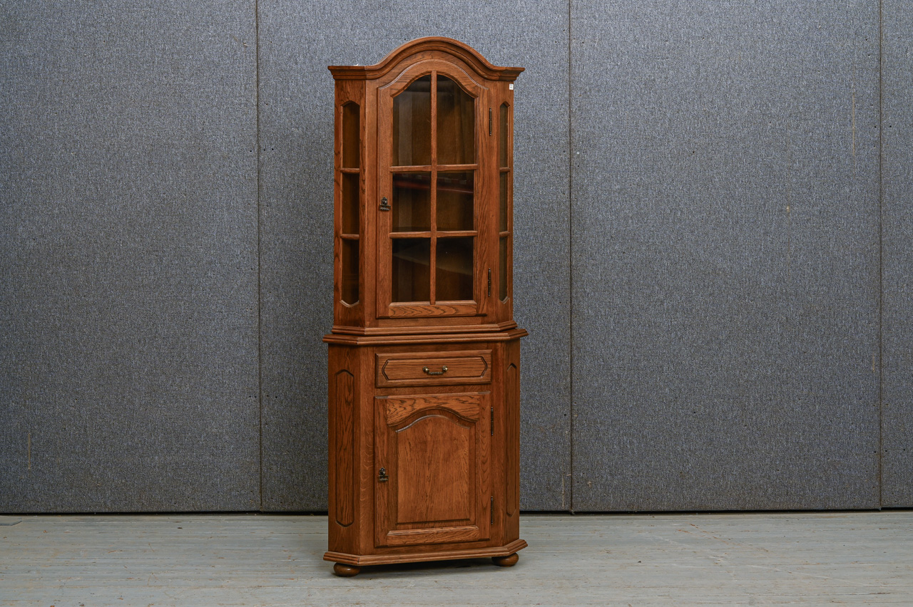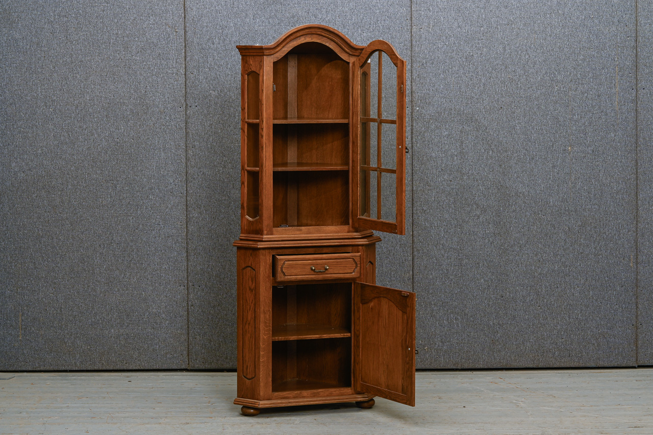 2daļīga stūra bufete. Ozolkoka finierējums un dabīga koka detaļas. Kods 460118.
