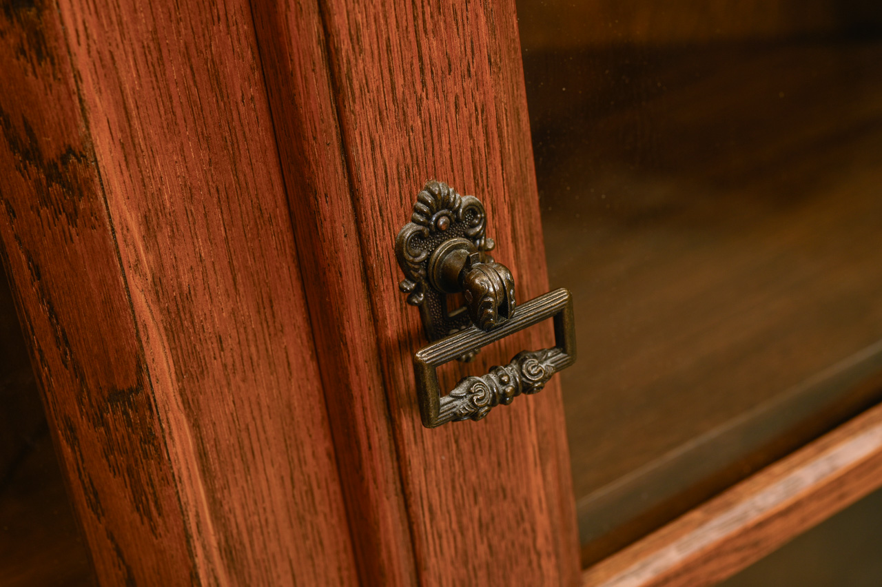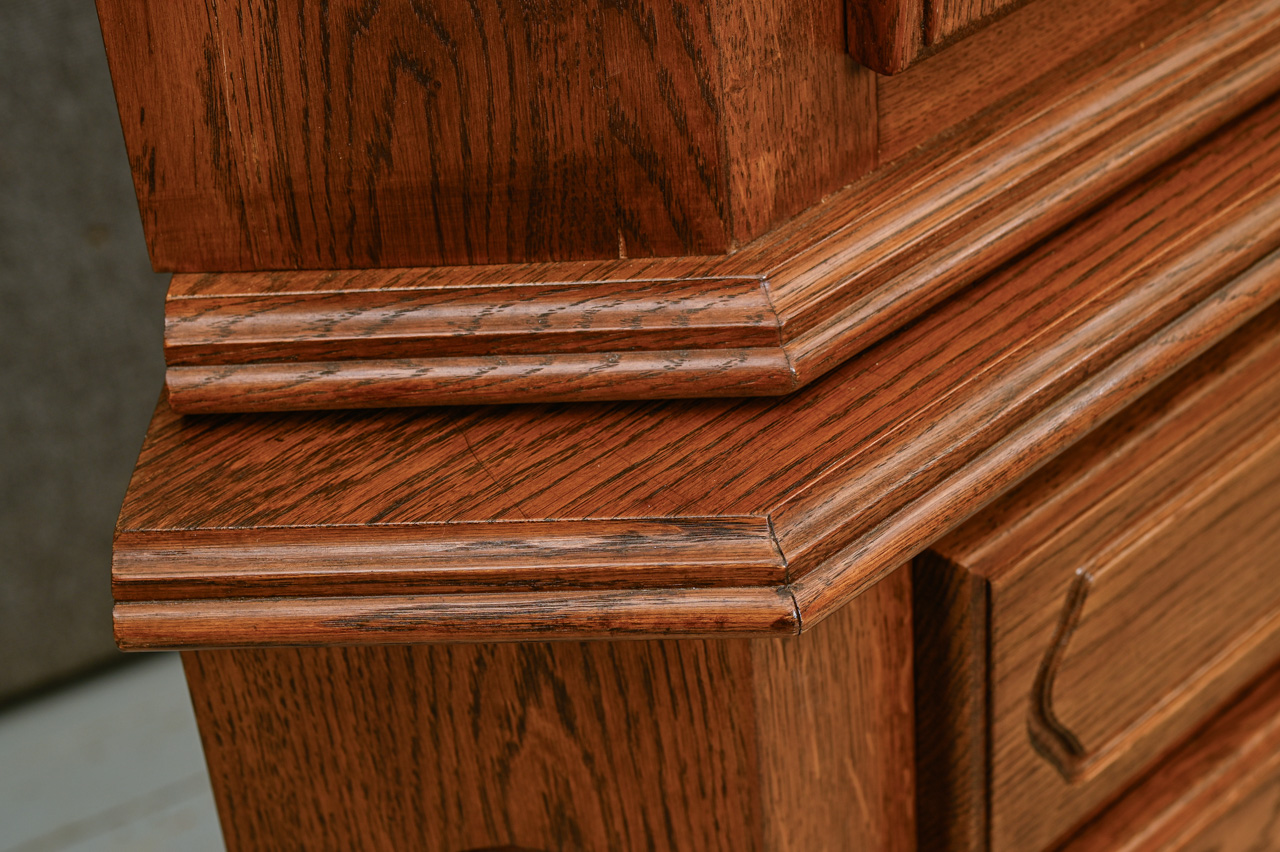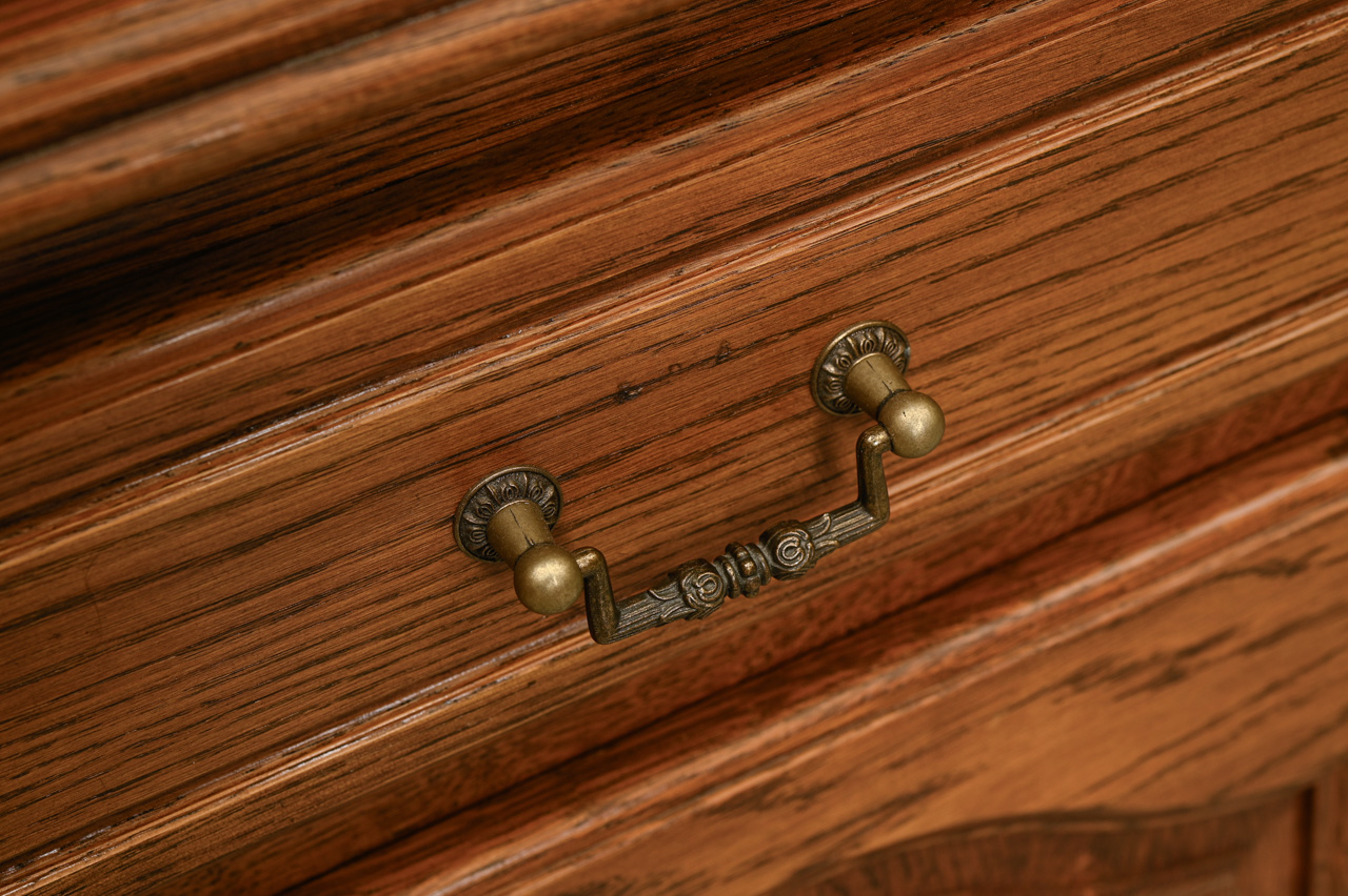 2daļīga stūra bufete. Ozolkoka finierējums un dabīga koka detaļas. Kods 460118.