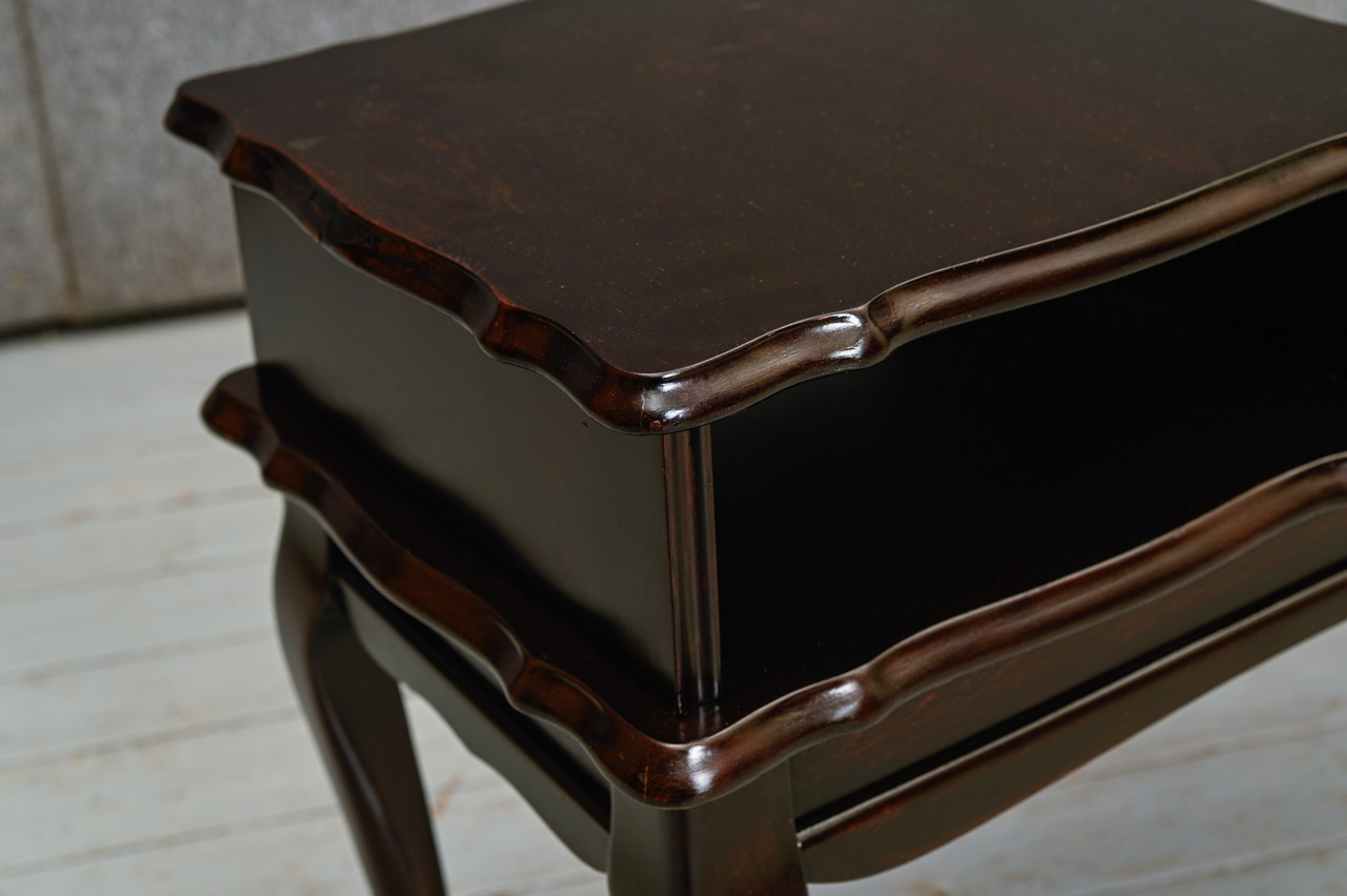 Tumši brūns, finierēts telefona galdiņš. Plauktiņa augstums 10cm. Izgatavots Rumānijā. Kods 860239.